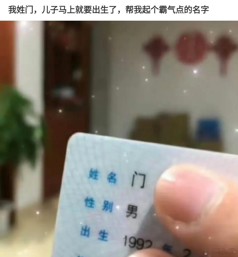 这人姓门,儿子即将出生,想给他起个霸气点的名字。你们觉得可以叫啥?