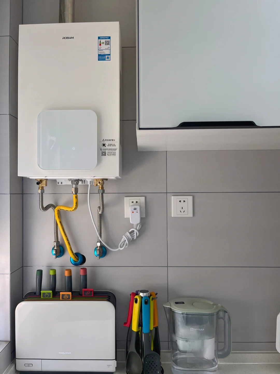 老板家的,首先从颜值来说,因为我家装修就是黑白灰风格,熟悉的宝子也知道我钟爱白色,同样这款热水器的昆仑白色和它的悬浮面板当时被我一眼相中啦~