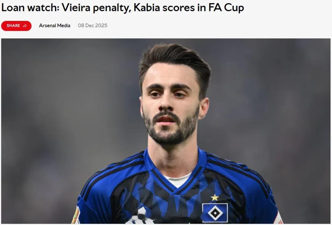 阿森纳阿森纳官方更新了外租球员比赛报告。维埃拉:汉堡3-2战胜不莱梅(这边海因作为替补没有登场),此役维埃拉出战82分钟,并为武什科维奇送上了助攻。此外维埃拉还在上周中的德国杯比赛点球大战中罚中了点球。基维奥尔:波尔图在葡萄牙杯中不敌吉马良斯胜利,此役基维奥尔轮休,不过最近他代表球队出战的联赛和欧联杯比赛帮助球队连续4场完成了零封。 内尔森:布伦特福德0-2不敌热刺,此役内尔森没有出场。卡比亚:什鲁斯伯里在足总杯第二轮比赛中2-1战胜了萨顿联,此役卡比亚首发登场,并且在伤停补时阶段帮助球队扳平了比分,将比赛拖入了加时赛,这也为什鲁斯伯里取胜挺进第三轮奠定了基础。卡库里:莫克姆不敌波士顿联,此役卡库里踢满全场。