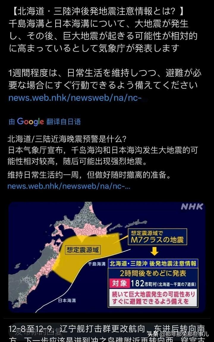 辽宁舰突然转头!疑因避开日本震区 12月8号到9号,本来要往北走的辽宁舰打击群突然改道了,先往东开,接着又转头向南,看样子是要去冲之鸟礁附近绕一下,再穿过宫古海峡回来。 与此同时日本千岛海沟附近接连闹了两次大地震——12月8号夜里11点左右一次7.8级的,9号凌晨5点又来一次6.8级的。日本气象厅都慌了,赶紧发预警,说未来一周这地方可能会发生像“311”那样的巨型海底地震,到时候还会引发巨大海啸。 辽宁舰放弃北上,选了条更安全的路,就是不想往地震海啸的危险区凑,毕竟舰上安全肯定是第一位的。 有意思的是,这边辽宁舰刚改道,日本自己的“加贺号”航母,出港出到一半也赶紧缩回去了,估计也是怕地震海啸出意外。