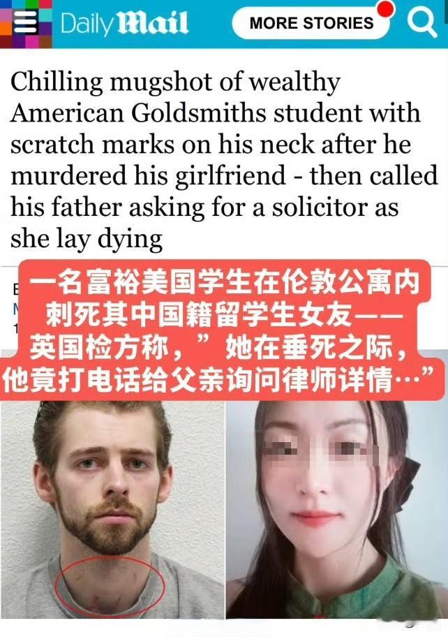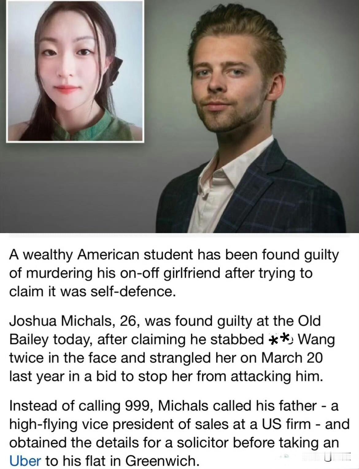 2023年,31岁的中国女留学生王哲在伦敦金史密斯大学攻读博士期间,于校园办证处结识26岁美国男子迈克尔斯,相识后不久两人发生性行为。事后王哲皮肤出现红点,担忧感染性病,多次要求迈克尔斯进行性传播感染(STI)检测,却遭对方漠视——迈克尔斯本就只是与她玩玩,另有其他性伴侣,对王哲的健康顾虑毫无在意,让王哲倍感欺骗与忽视。 2023年3月19日,忍无可忍的王哲向迈克尔斯发送大量讯息,宣泄内心的愤怒与恐惧。次日下午,迈克尔斯携带草莓、葡萄、奶酪等食物前往王哲寓所,两人见面后爆发激烈争执,情绪失控的迈克尔斯持刀捅向王哲脸部,随后将其掐死。作案后,迈克尔斯当即致电远在芝加哥的父亲求助,咨询律师对策,还迅速将凶器、王哲的手机及剩余食物丢弃至小区垃圾桶,试图掩盖罪证。 近日,该案庭审结束,陪审团经16小时31分的闭门讨论,一致裁定迈克尔斯谋杀罪成立。据悉,王哲本计划完成博士学业后回国就业,却不幸在异国惨遭遇害,令人痛惜。迈克尔斯家境优渥,庭审期间其父母专程飞赴伦敦全程陪同,并为其聘请专业律师团队辩护;王哲父母也已赶往英国,等候法院近日作出最终判决。