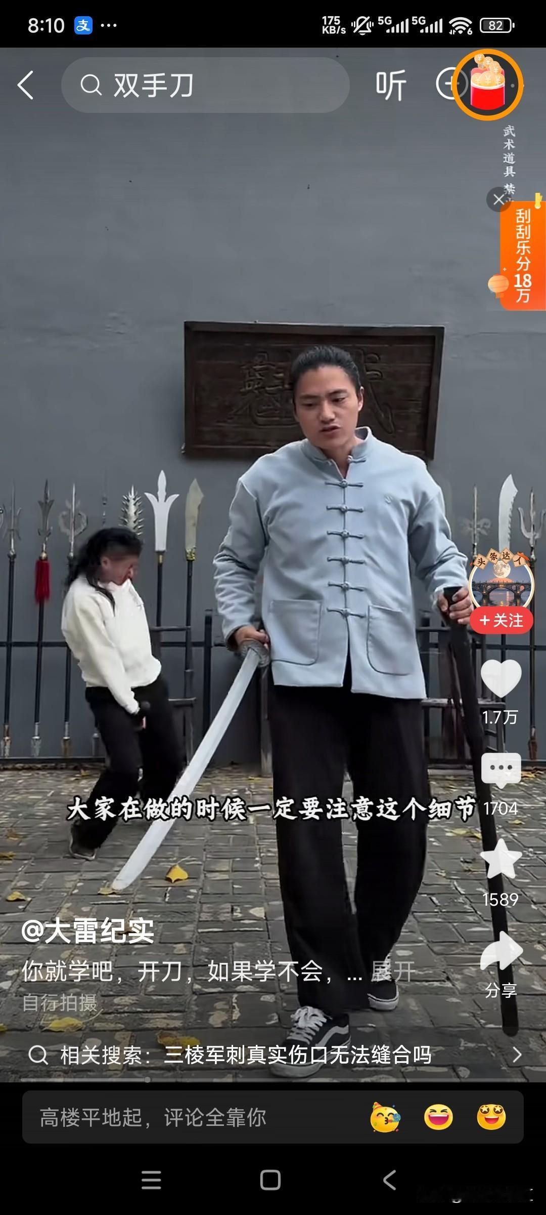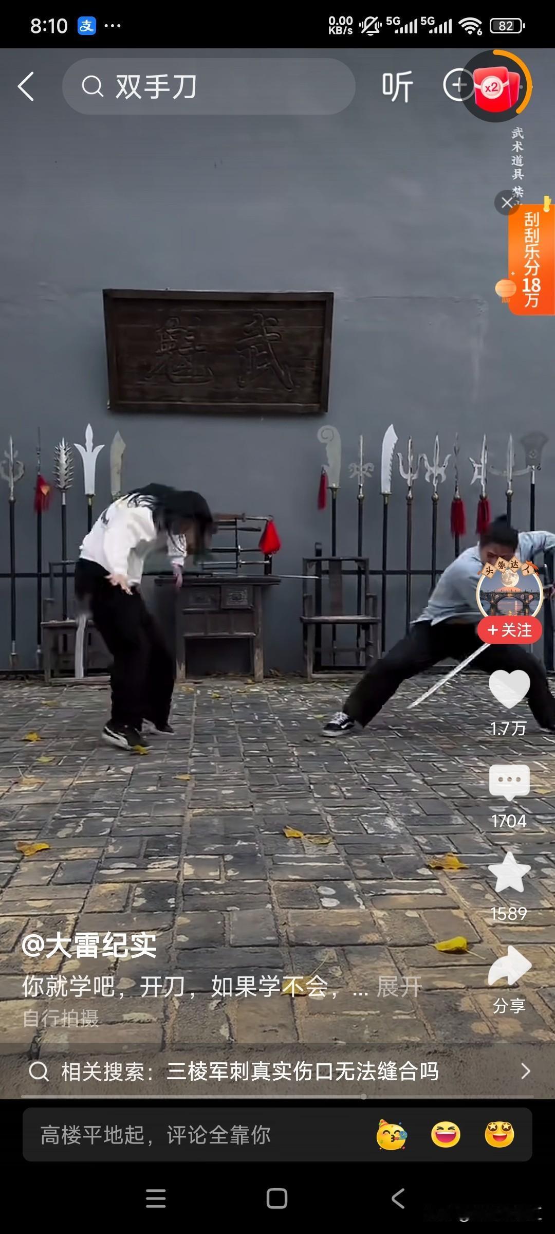 笑不活了。 这个招式是不是就是传说中的撩阴刀? 最近看了一个兵器的博主,在卖的时候演示了一下剑的用法和招式。 和他打对手仗的那一个长头发男的,被这个博主出了一起招,直接就给干趴下了。 上演了很生动形象的兵不血刃,要渣就直击要害的招式。 你们觉得这种招式实用吗? 这是不是就是传说中的下阴招儿? 提撩刀 搞笑剑