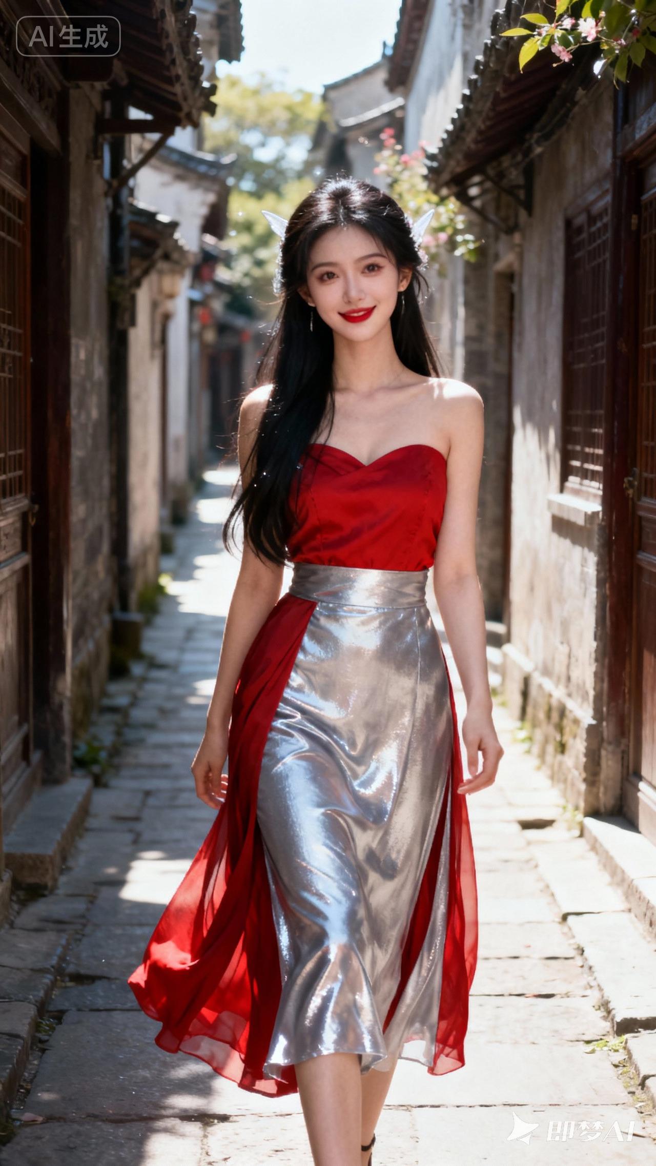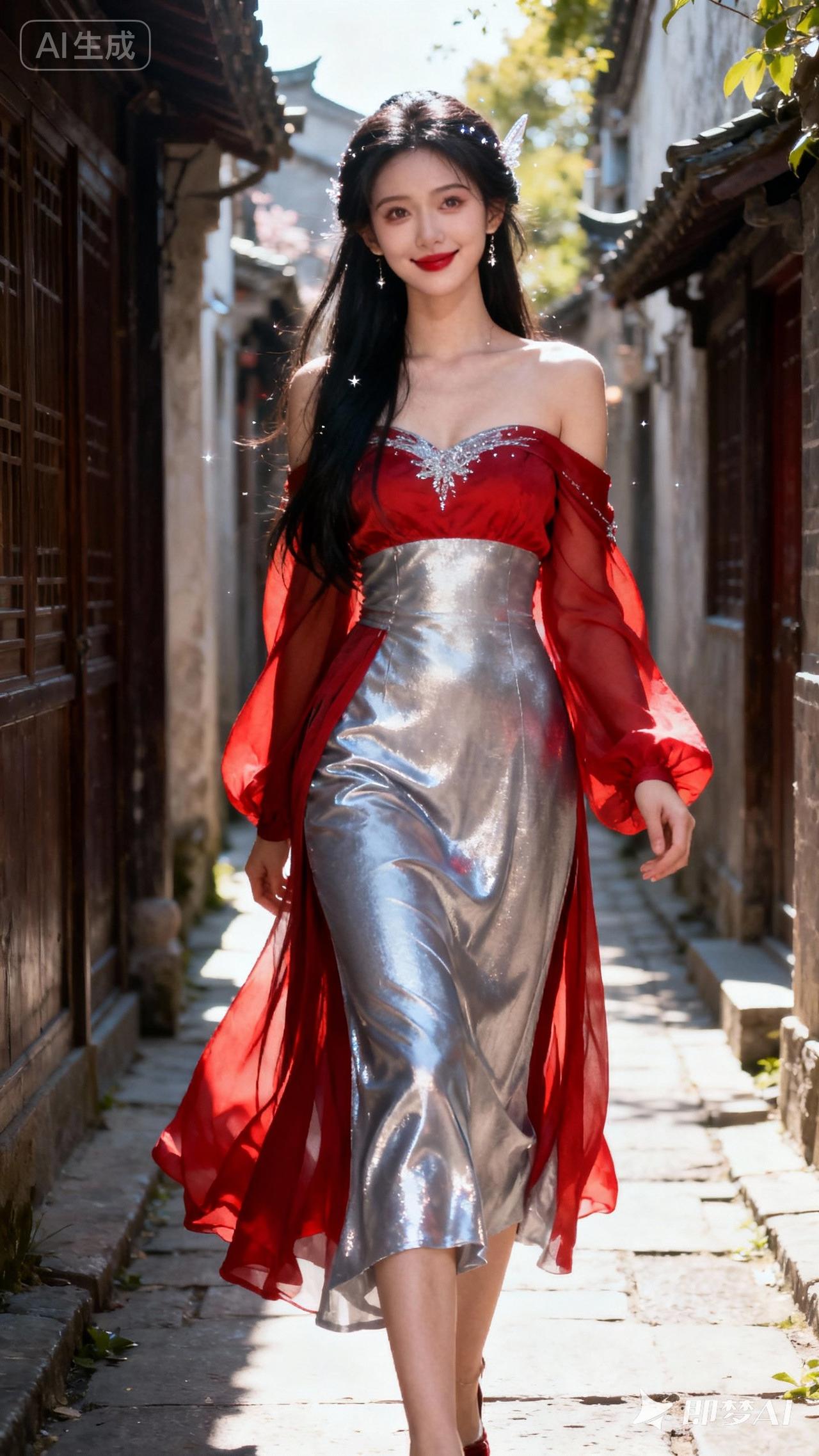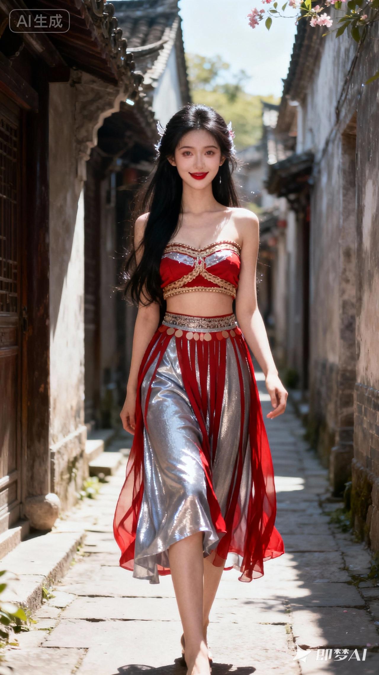 阳光下的温柔少女,黑毛衣与牛仔裤的完美搭配,尽显自然与优雅。