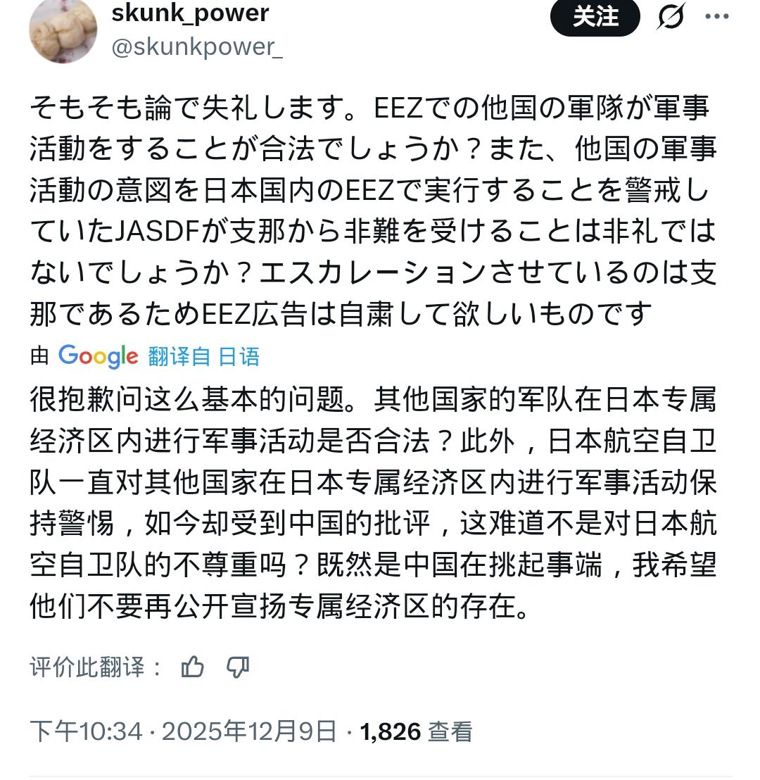 日本人有多无知, 看这条留言就知道了! 而这,已经是能好好说话的极少数! 这条留言,完美展示日本人对国际法和海洋公约的无知。 所谓“专属经济区“(EEZ),并不是领海。 沿岸国,在EEZ内,只享有资源主权和特定的管辖权,没有主权,当然也无权禁止他国的军事航行和飞越。 所以,所有国家仍然享有航行和飞越自由,包括进行军事训练和演习 ——这是国际海洋法的基本常识。 不是长期被官方和社会舆论认知作战,何至于无知至此? Source: X