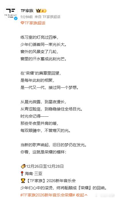 tf家族灯牌大战要来了tf家族新音粉丝划区TF家族新音官宣 2026 新音官宣