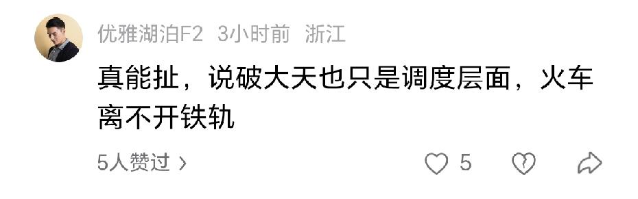我们测试了一项新技术,可以在现有铁轨的基础上提升50%的运力。 有个网友不屑的说,只是调度层面。 好像不需要技术一样。 还有人说,别的国家不往这个方向研究,是因为人家不需要。 我真想一口盐汽水喷死他们。 调度层面不需要技术吗?毫秒级的调度时间控制不需要技术吗? 搞不出来别的国家不需要?你看看我们如果免费提供,他们会不会抢着要! 这相当于陆地上跑轮船了!