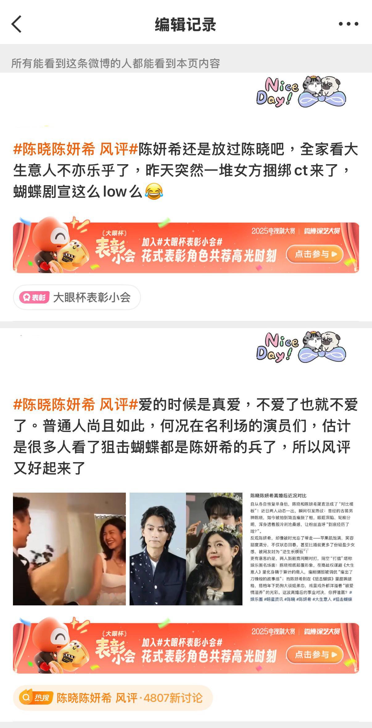 只想问一句何事落到这收场🚬陈晓陈妍希 风评