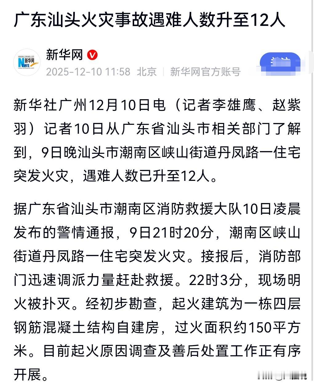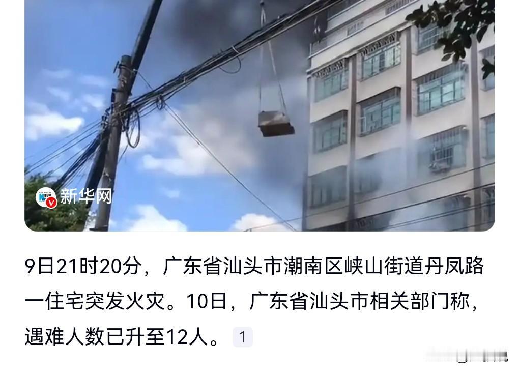 这真的是太悲剧了。 9日晚,广东汕头一住宅发生火灾事故,遇难人数升至12人。 这真的是太可怕了。 一下这么多人失去了生命。 人生真的太无常了。 把握生命中的每一天,不再自寻烦恼。