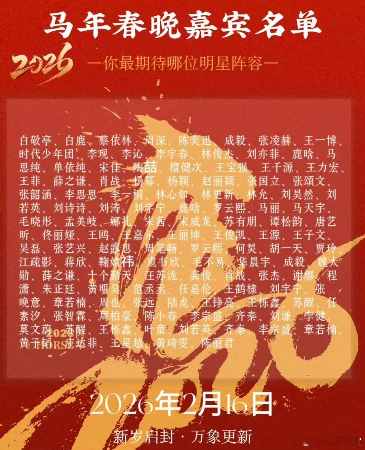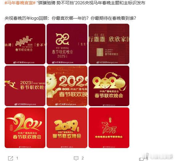 马年春晚邀请了很多明星2026年央视马年春晚官宣啦!主题是“骐骥驰骋 势不可挡”!网传邀请了很多明星,一切以官宣为准!先来看看👀历年央视春晚logo回顾马年春晚官宣