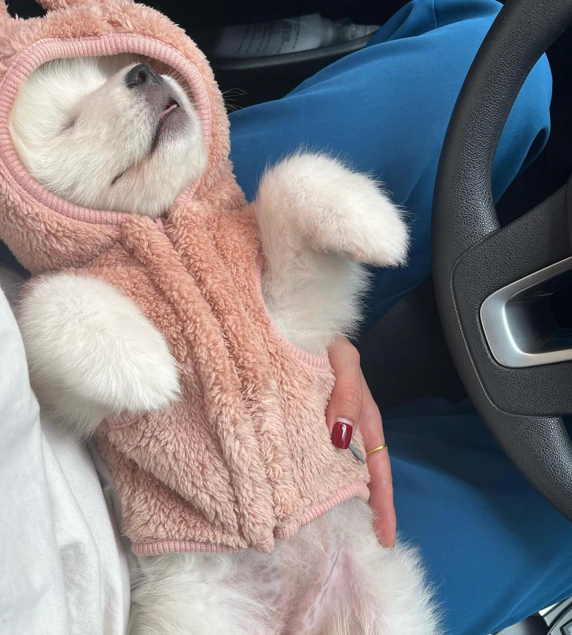 萨摩耶:抓好绳子,走这边,别走丢了耶!