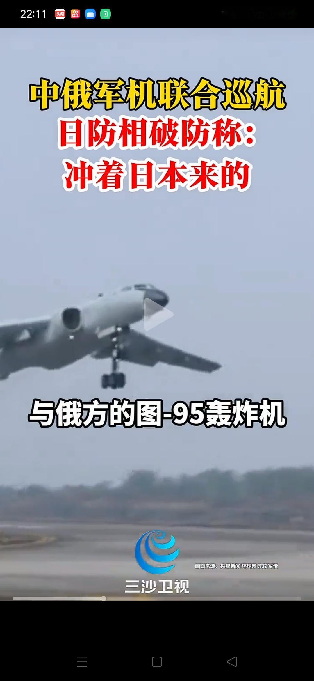特大新闻!据报道,中俄轰炸机编队飞入辽宁舰所在海域,中俄轰炸机和航母编队从三个方向包围了琉球群岛。 日本三个没想到,一是没想到,俄罗斯会出手,而且是图95,那可是战略轰炸机,携带核武器。俄罗斯够意思,自己和乌克兰打仗打的精疲力尽,还是没有忘记帮助中国,这样的朋友可交。二是中俄演习经过地点距美国军事基地很近,美国竟然没有出手。三是中俄舰机直接包围琉球群岛。 辽宁舰编队 中俄朝同盟 中国新轰炸机 中俄舰艇编队 中俄战略轰炸机巡航的意义是什么