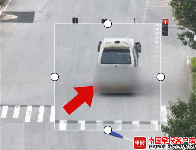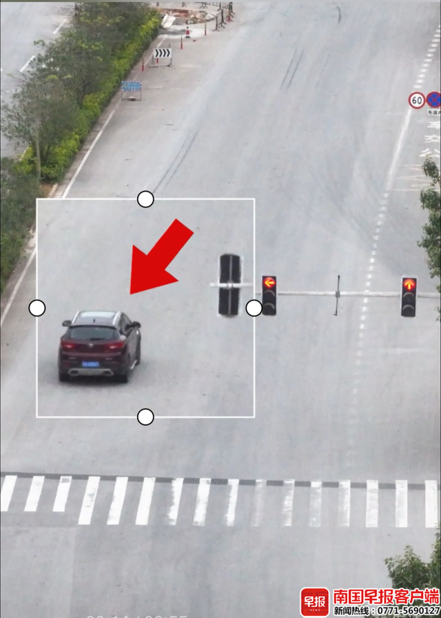 无人机拍到车辆闯红灯违法行为。视频截图