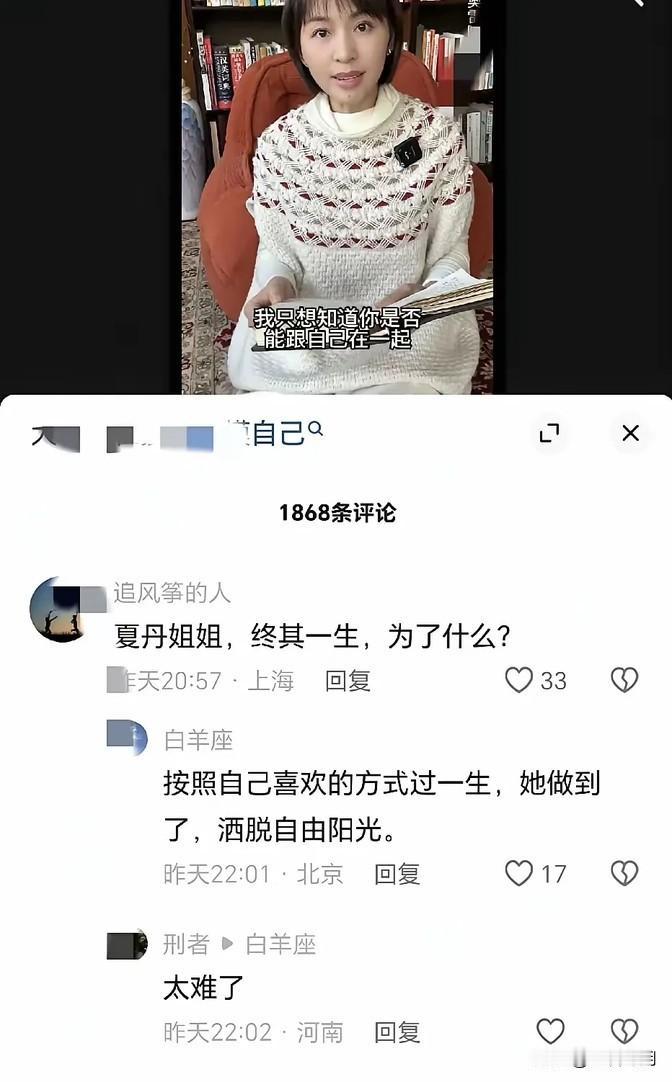 给夏丹姐的一封信 夏丹姐,最近听说你把自己关在屋里好几天不出门,还写了篇文章叫《触碰自己》,读完后感觉特别触动心弦。了解你的人都知道,这些年你过得不容易,尤其是自从爸走了之后,就一直和妈两个人互相扶持。妈身体不好,你也因此辞去了央视那份让人羡慕的工作,一心一意照顾家里。这份孝心很多人都看在眼里,记在心里。 现在你都五十多岁了,是时候考虑下自己的生活了。听说你在德令哈的那晚,读着海子的诗,忍不住流下了眼泪。从这能看出你内心其实挺坚强的,但也有柔软的一面。人生嘛,辉煌过也该给自己找个归宿了。爱情虽然不是生活的全部,但它确实能给人带来不少温暖和力量。或许真的可以考虑找个人一起分享生活中的喜怒哀乐。 说到这儿,看到你最近状态不太好,是不是因为直播带货成绩不理想,或者是对现在的生活有些迷茫?如果觉得压力太大,不妨找个专业的心理医生聊聊,没什么不好意思的。 素材来自网络,如有侵权请及时联系删除