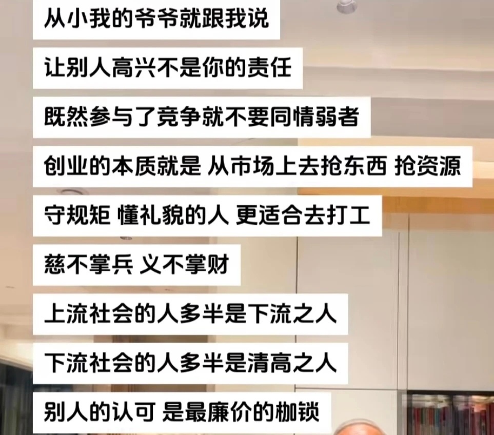 在不伤害他人的前提下,永远先爱自己。别人的认可是最廉价的枷锁,自我接纳才是最低成本的自由。期待他人的认可,就像穿上了别人的裤衩,别人放什么屁都得兜着。满谈语录 拒绝讨好型人格,面子没那么重要。但凡要你顾全大局的,你都不在这个局里;但凡要你不惜一切代价的,你就是那个代价。你忽略什么,什么就消失不见;你介意什么,什么就层出不穷。