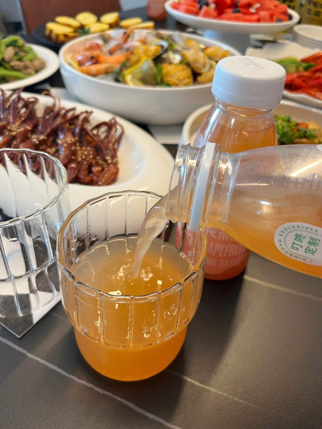 再做一盆夏日限定捞汁小海鲜,配上冰啤酒和清爽的西柚茉莉茶简直就是yyds!