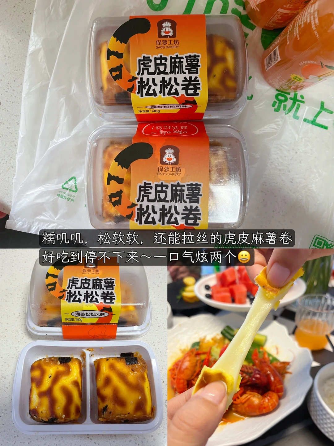 这个夏天叮咚的拳击虾可没少吃了,多种口味满足不同需求,前几天是麻辣口味今天又是蒜香的,加热的时候放些黄瓜,拌在一起很不错~ 下单的时候还给小朋友买了两盒保萝工坊的虎皮麻薯肉松卷,没想到这么好吃,糯叽叽的甜而不腻,馅料还是可以拉丝的,不仅小朋友喜欢,大人也爱吃呀~