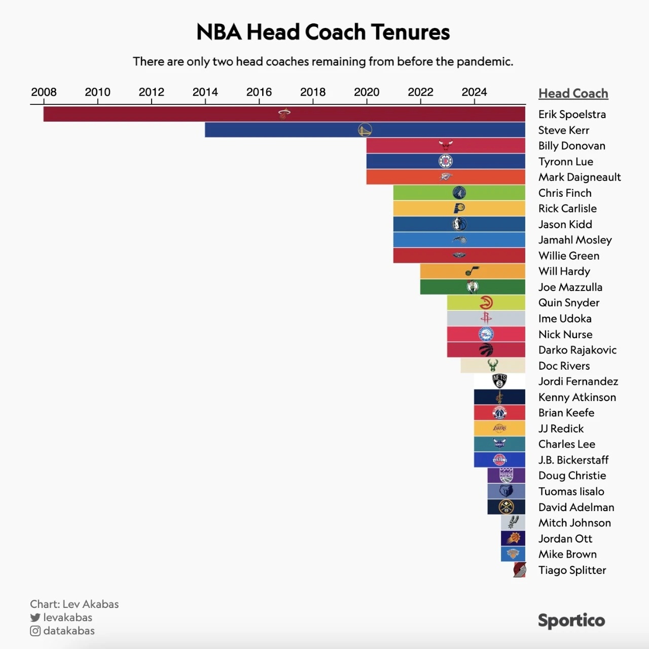 马戴执掌雷霆六个赛季,和多诺万、泰伦·卢一样,并列联盟第三长。编辑by蓝色狂潮O