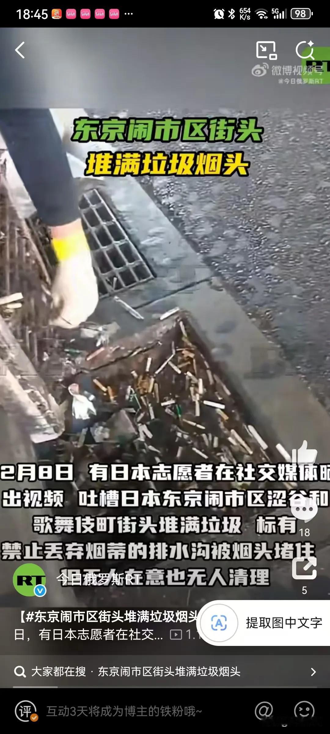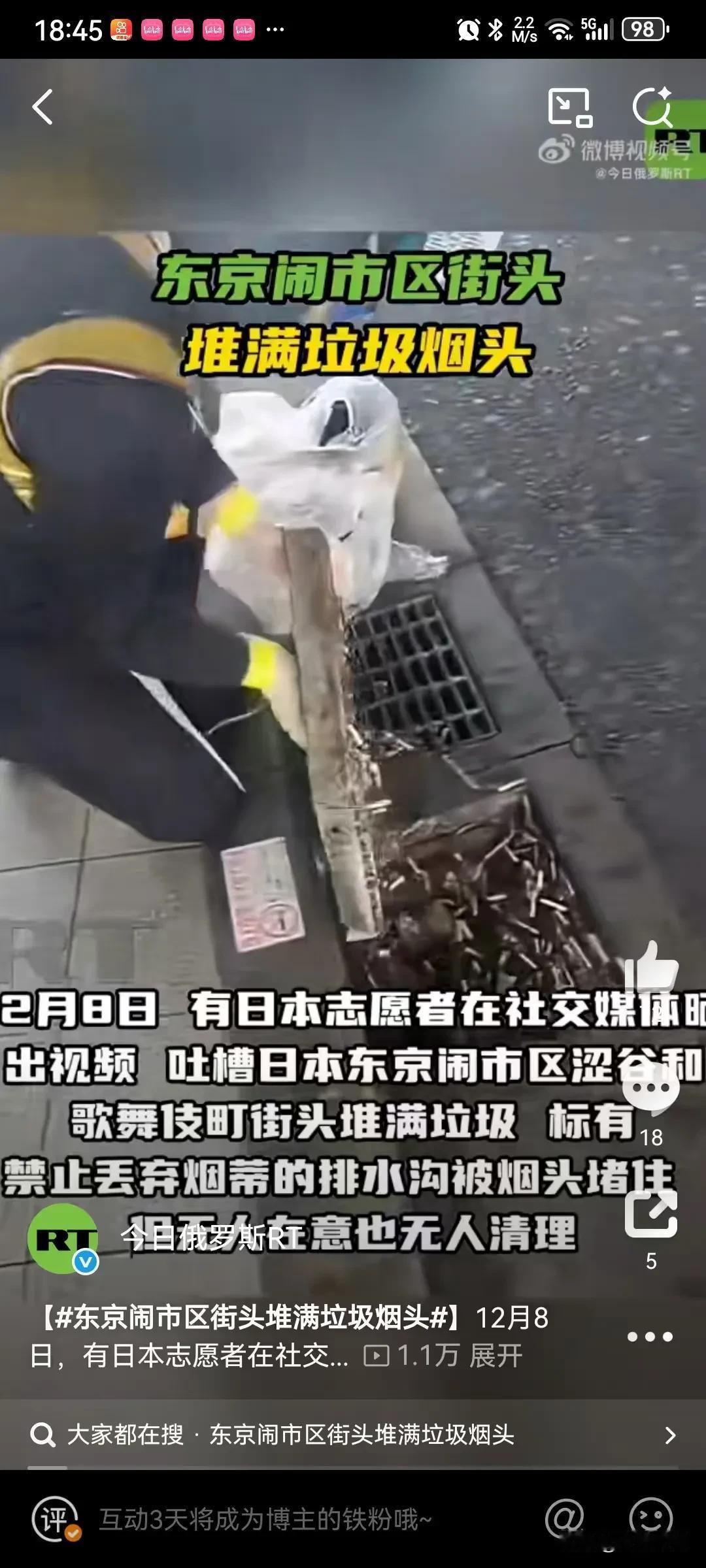精日整天吹日本街道没有垃圾桶,却保持得干净,因为日本人素质高,出门不会乱丢垃圾,会把垃圾带回家再处理! 而真实的日本街道是这样的,下面看图片,日本的志愿者把日本街头的排水沟打开,里面密密麻麻都是烟头,几乎堵到无法排水了,还有街头到处是垃圾,日本人还经常做节目,说是中国游客去扔的,精日也整天说中国游客素质不好,到日本乱丢垃圾,但是请问就那点中国游客,可以丢成这样吗?反正日本有什么不好的地方,都是中国人去做的,这就是精日和日本人的典型栽脏思路!