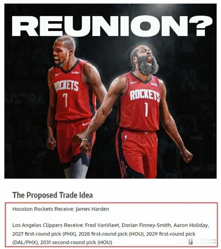 7换1来了?火箭送三将+四选秀权迎哈登,快船狂揽筹码,大哥三弟冲冠 今日,据Fansided快船板块的作者Iliyan Lakhani爆料,根据他知道的情况,哈登在洛杉矶的生涯似乎已濒临尾声。在诸多流言之中,他大胆提出一个交易方案。 方案具体如下:火箭将送出范弗利特、芬尼史密斯、霍乐迪,以及太阳2027年首轮签、火箭2028年首轮签、2029年太阳与独行侠二者中更靠前的首轮签、2031年次轮签, 得到快船球星哈登。 值得一提的是,哈登与杜兰特的情谊早已超越赛场,自19岁相识便结下兄弟羁绊,从雷霆时期的并肩作战到篮网重聚,这份联结从未褪色。当年篮网“三巨头”未能圆梦,核心问题并非二人默契缺失,更多源于外部因素的牵绊,他们场上的化学反应从未被真正否定。 尽管火箭的财务状况与对范弗里特的重视,让哈登重返休城、与杜兰特再度联手的设想充满现实阻碍,但不可否认的是,这支志在冲冠的球队,正迫切需要一位像哈登这样兼具得分爆发力与组织串联能力的明星后卫——他的赛场掌控力,正是火箭冲击总冠军的关键拼图。而若能打破桎梏促成“兄弟重聚”,这不仅是情怀的圆满,更可能成为改变联盟格局的冲冠杀招。 如何评价快船球员莱昂纳德 哈登