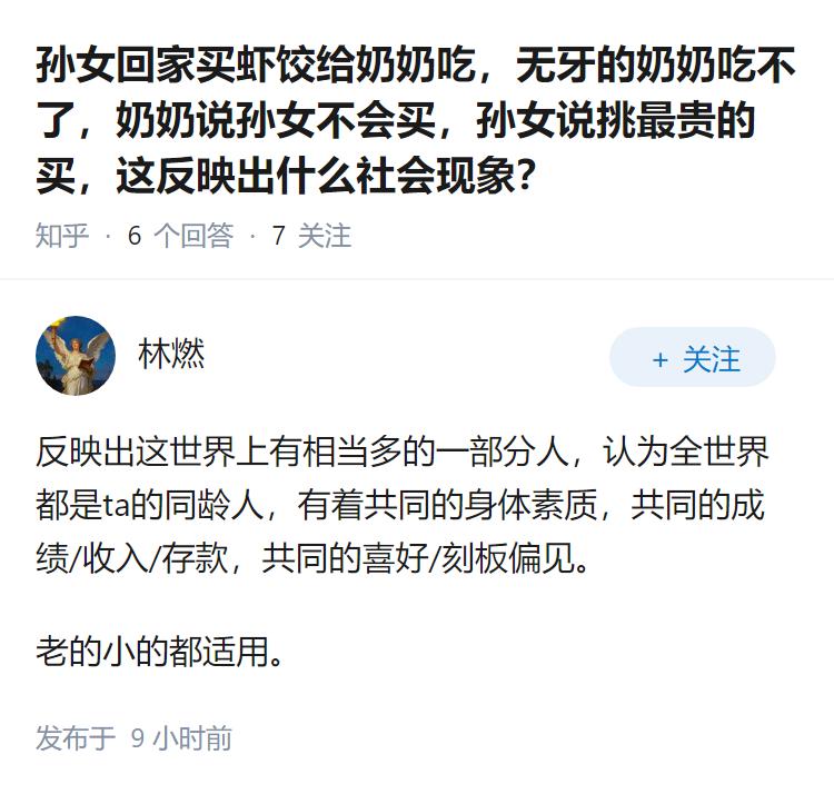 孙女回家买虾饺给奶奶吃,无牙的奶奶吃不了,奶奶说孙女不会买,孙女说挑最贵的买,这反映出什么社会现象?