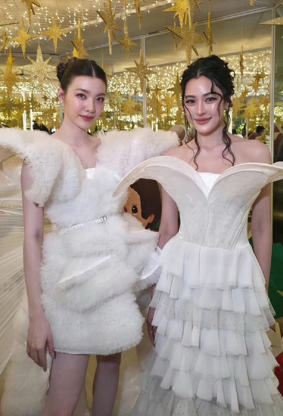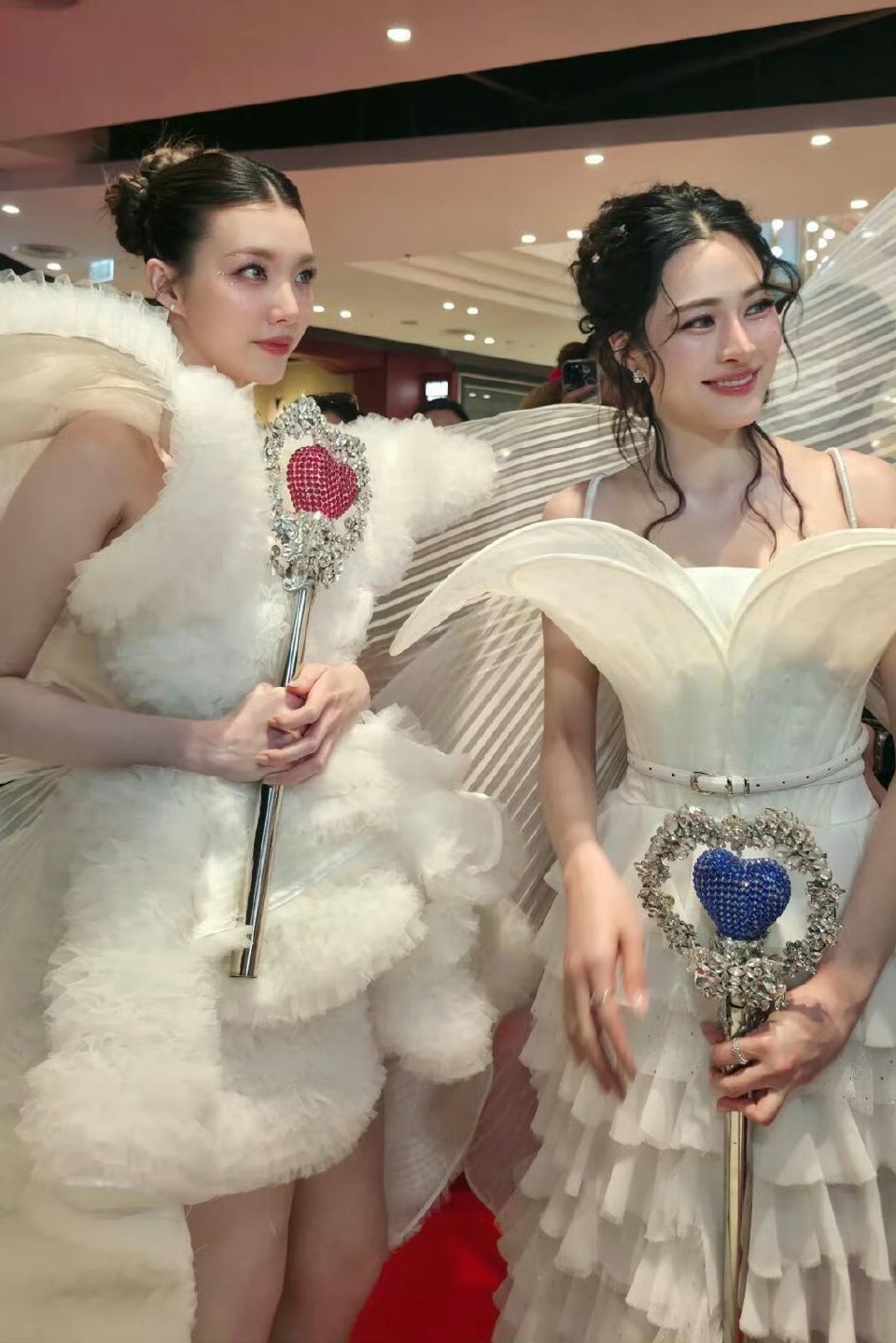 邝玲玲、Orm Kornnaphat今日合体出席线下活动,身穿白色裙装,手拿仙女棒,真正的天使下凡🪽