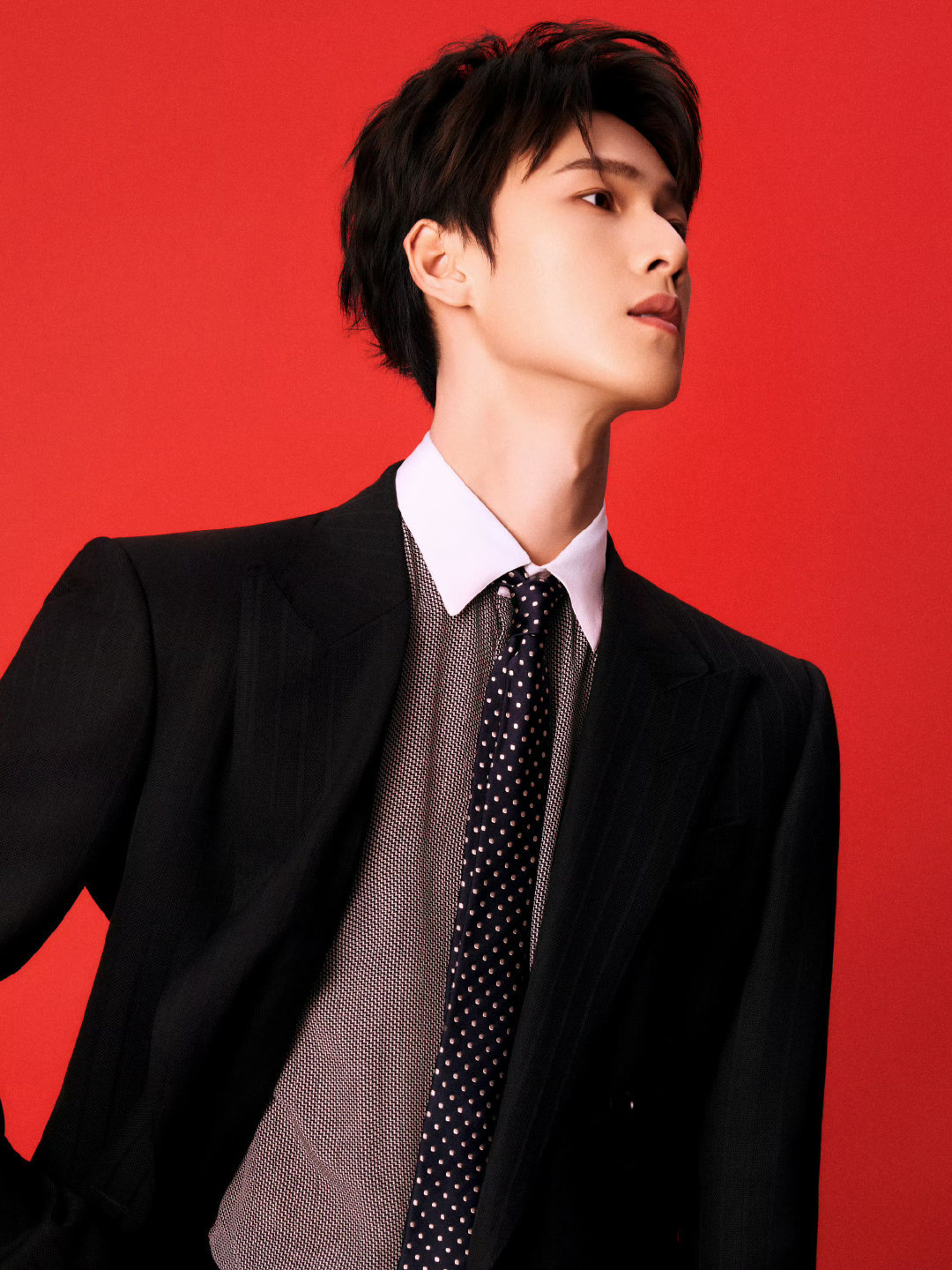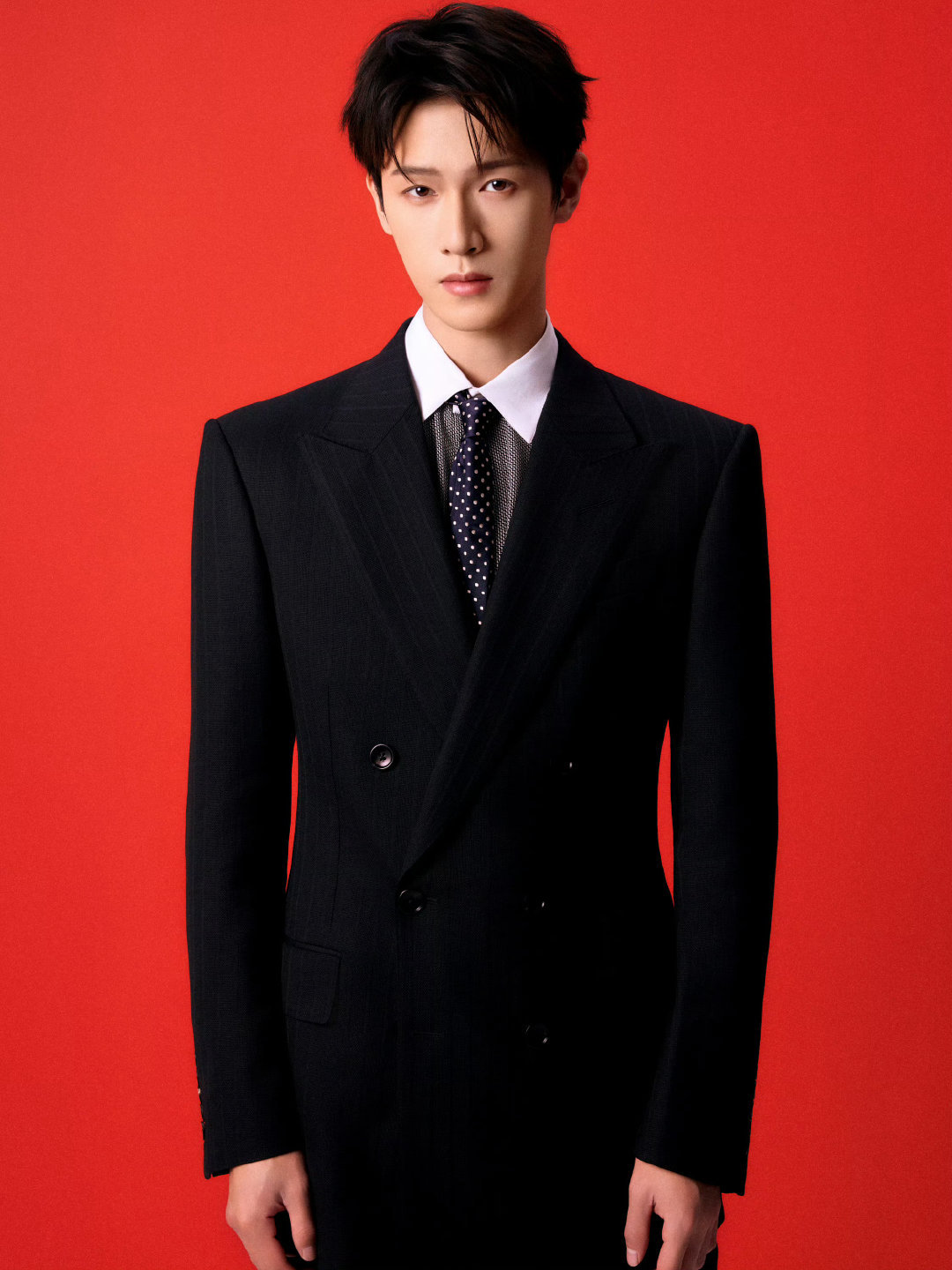 李昀锐|TF绝色之夜活动造型出图,身穿TOM FORD 2026早春男装系列,黑色双排扣西服套装,缀以缎面波点领带,宽肩窄腰,比例优越!中国区大使的迷人魅力