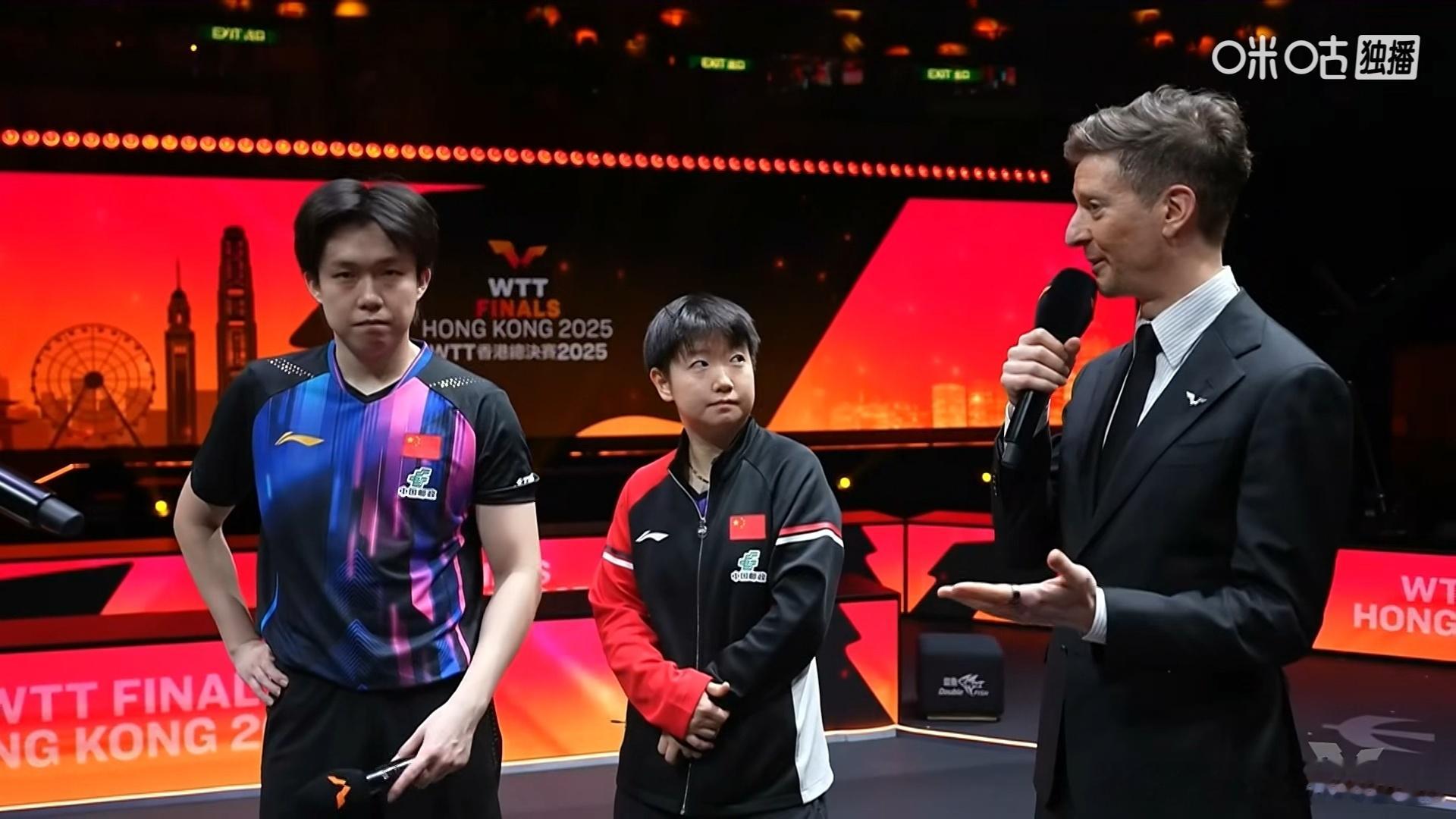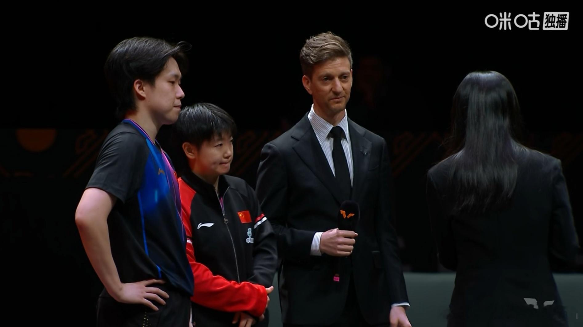 孙颖莎王楚钦混双后的内场采访是亚当,他最喜欢这两小只了