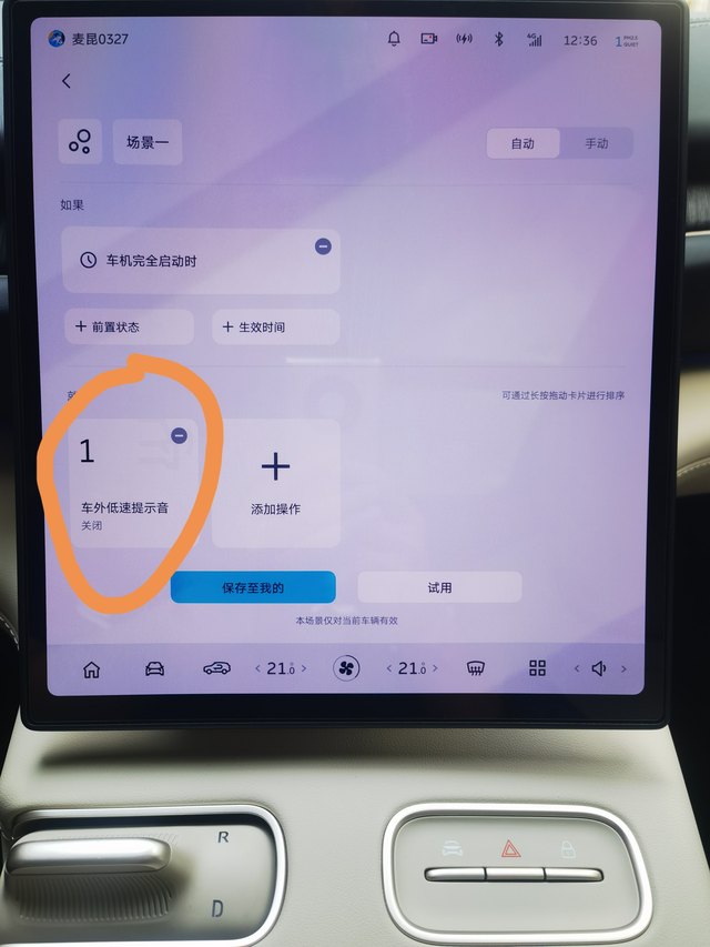 用车技巧关闭低速提示音 开电车,大家肯定都非常享受车辆平滑行驶过程的安静感,但是在低速度的时候电车有个比较头疼的地方就是低速提示音,“蚊子飞的声音”,有时候确实比较烦;没有关闭开关,只能在行程中关闭,且单次有效;这里分享一个小技巧,无需每次手工操作,设置一个快捷场景,每个行程开始前,都会自动关闭,看我怎么操作的 首先打开车机app的“快捷场景应用”选择界面左上角的“新建”,条件选择“车机完全启动”,点开执行操作选择“系统设置”车辆低速提示音”,选择“关闭”,然后保存;这样子,每次车辆出发前,都将会自动关闭低速提示音,当然还有更高级的玩法,在一些条件下才生效