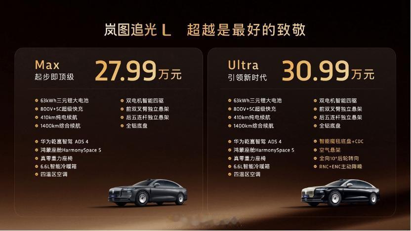 版型只有2个,少意味着好记好传播。Max版27.99万元、Ultra版30.99万元,还有终身质保等五项权益。追光L是岚图三旗舰矩阵的最后一块拼图,在2025年全部拼齐。
