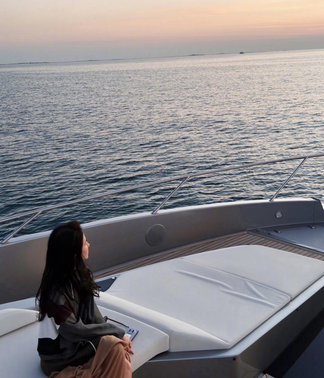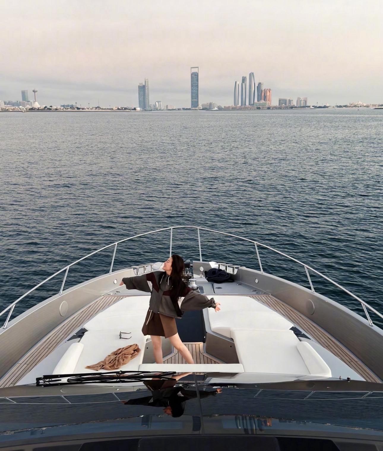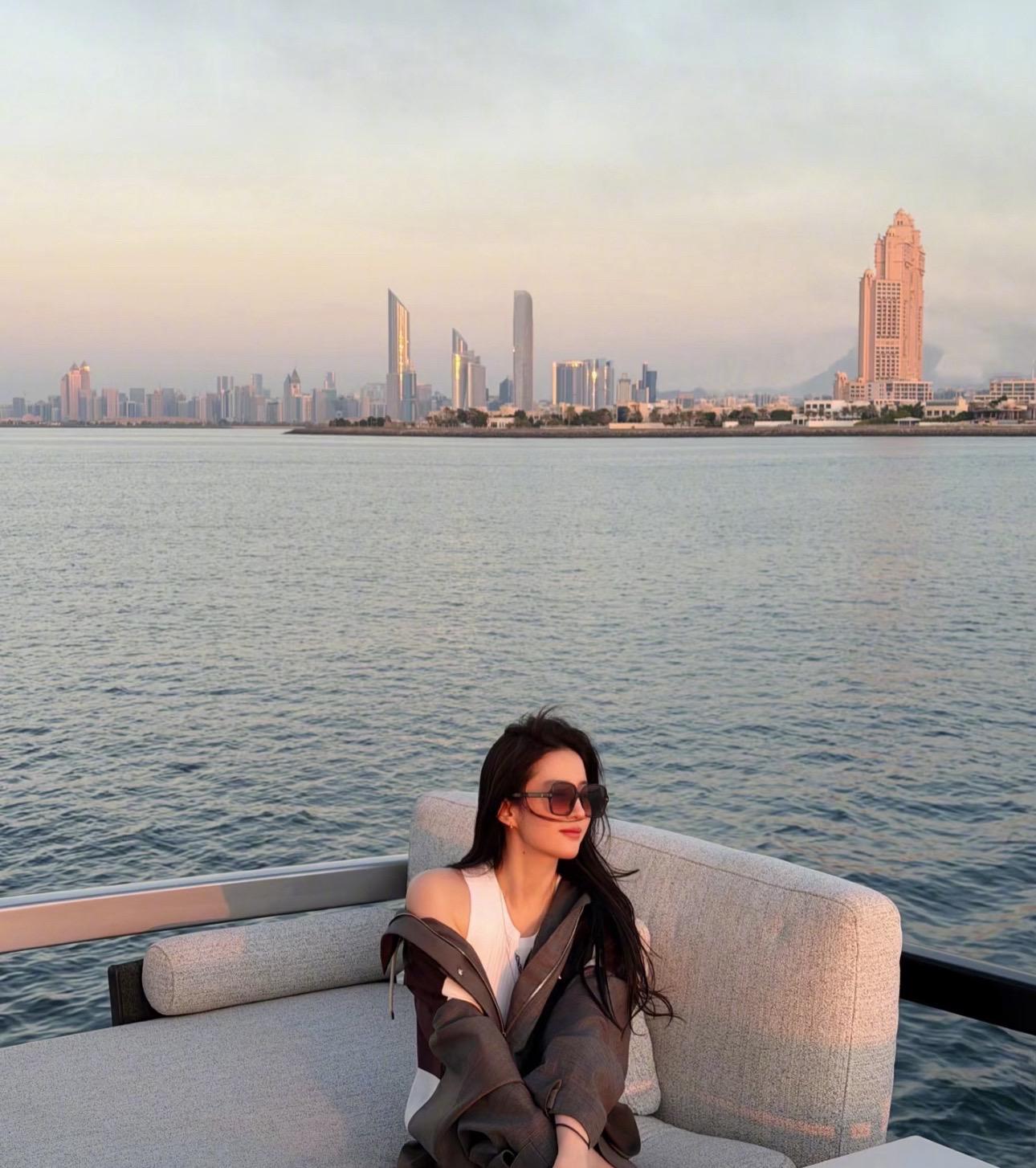 刘亦菲更新阿布扎比游艇看落日照~