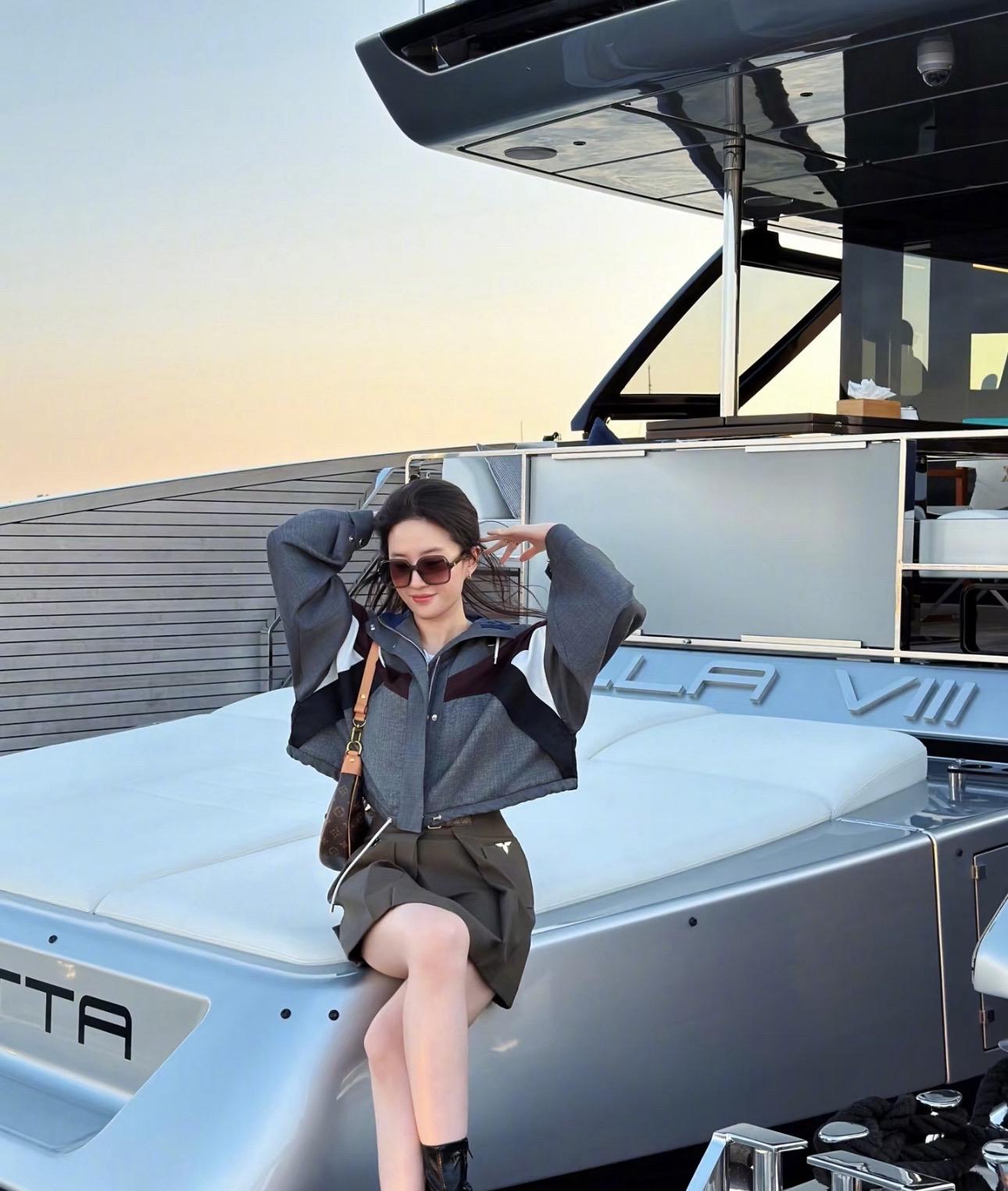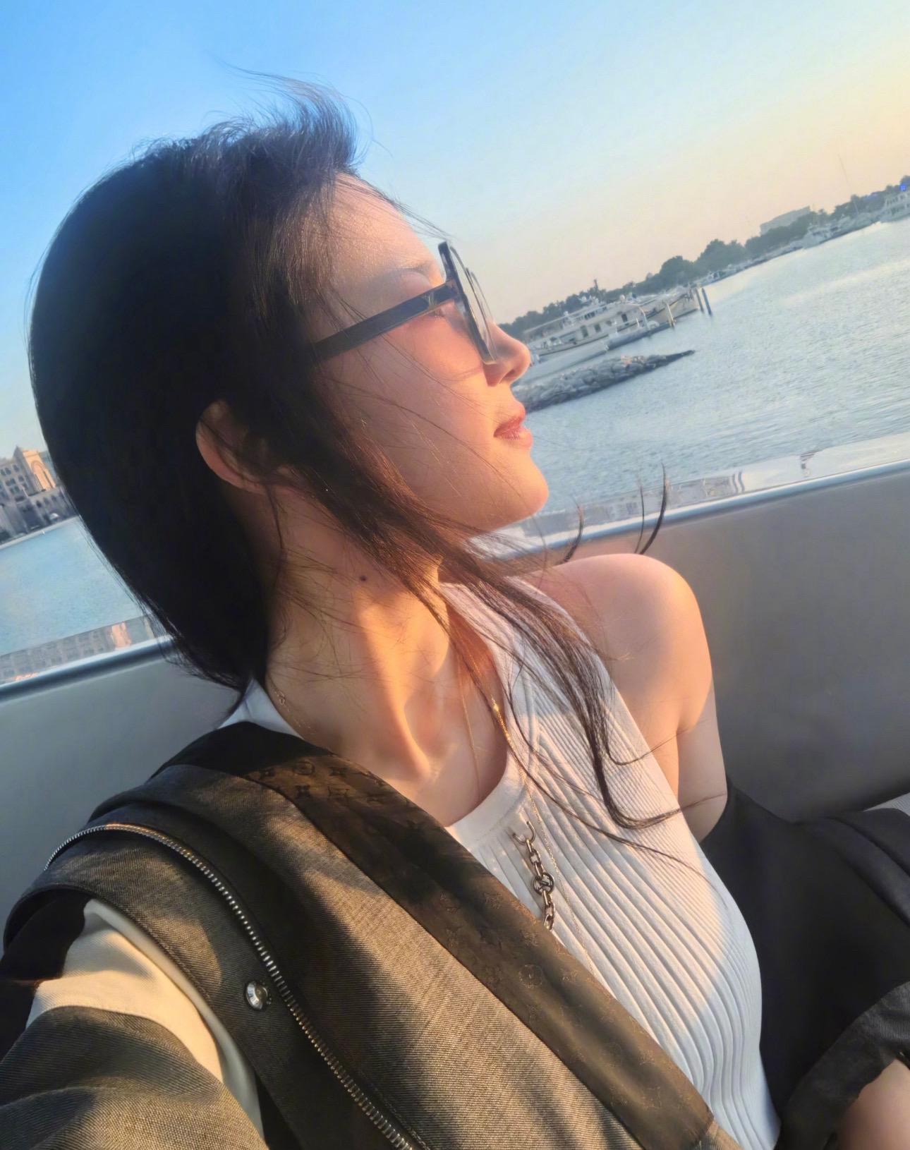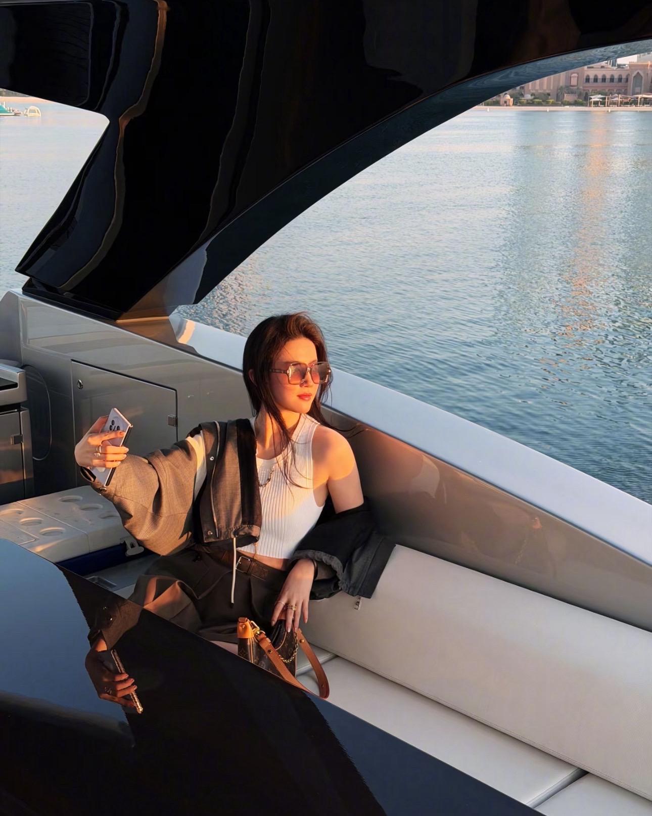 刘亦菲更新阿布扎比游艇看落日照~