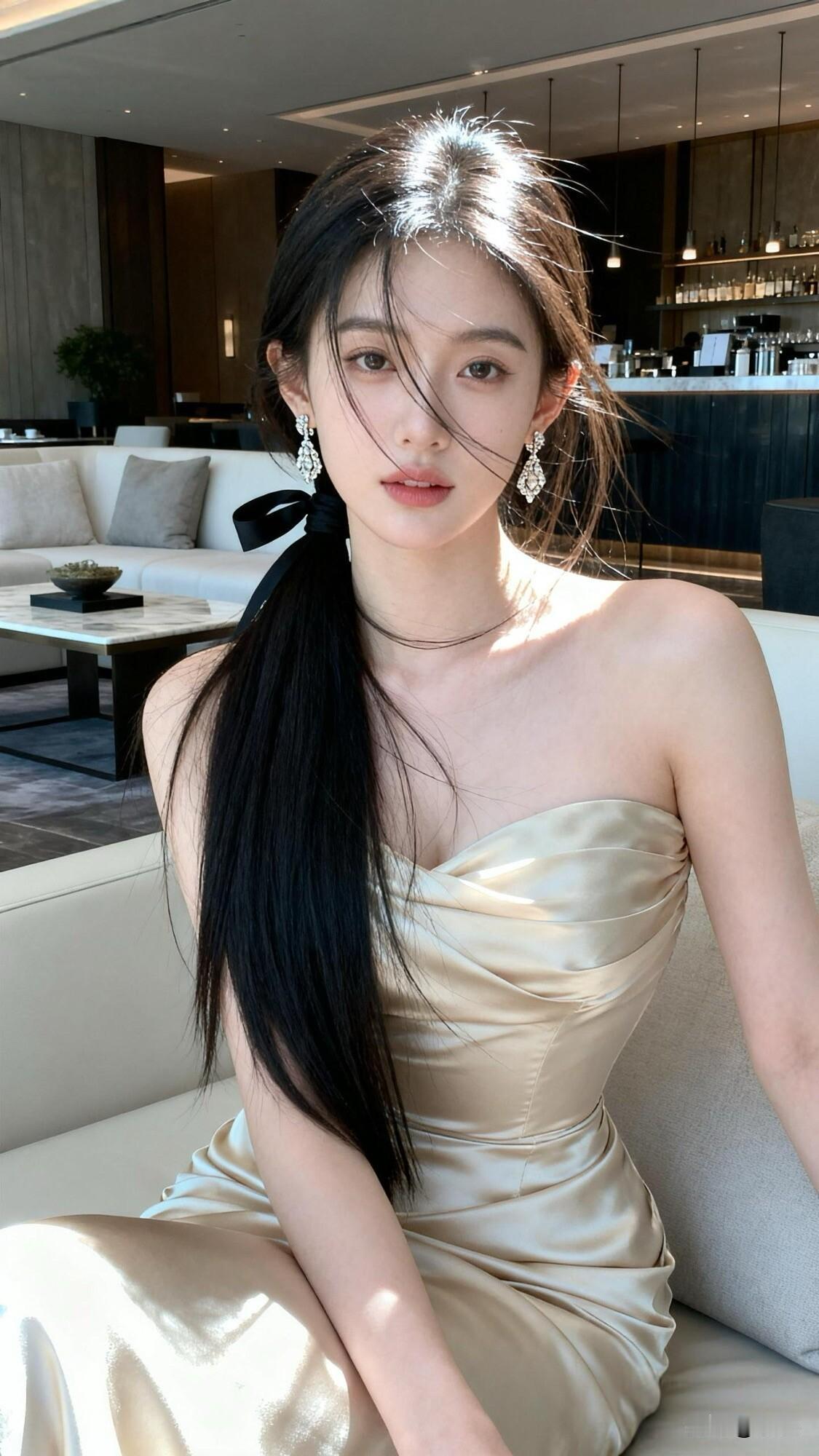 绿树荫中人影斜,轻纱薄衫映晚霞。