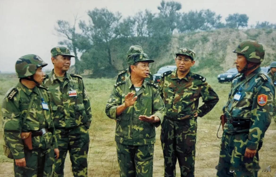 2002年,时任北京军区副司令员的粟戎生中将(左三,粟裕大将之子)在演习现场与部队指挥员一起研究军事训练任务的场景。粟戎生在工作中结合部队建设和作战训练实际,积极开展科学研究,曾获国家科技进步二等奖、军队科技进步一等奖等多项奖励,并获得国家专利技术10余项。