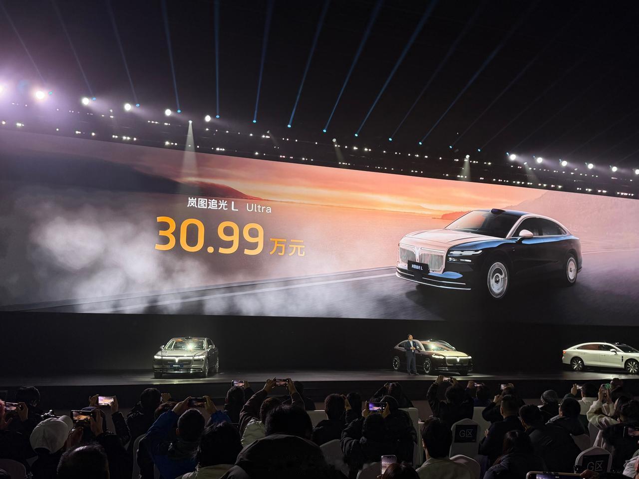 双拼色意味着豪华与旗舰,追光L的气场完全能hold住。一些产品技术特点: - 三电:全域800V插混、5C超充与63kWh、纯电续航410km、20%至80%电量快充仅需12分钟。 - 油耗:CLTC馈电油耗4.9L/100km。 - 尺寸:5125/1985/1522mm,轴距达3010mm - 安全:2000Mpa一体式加强门环设计、2000Mpa热成型车门防撞梁、华为乾崑智驾ADS4的全维防碰撞系统CAS4.0。