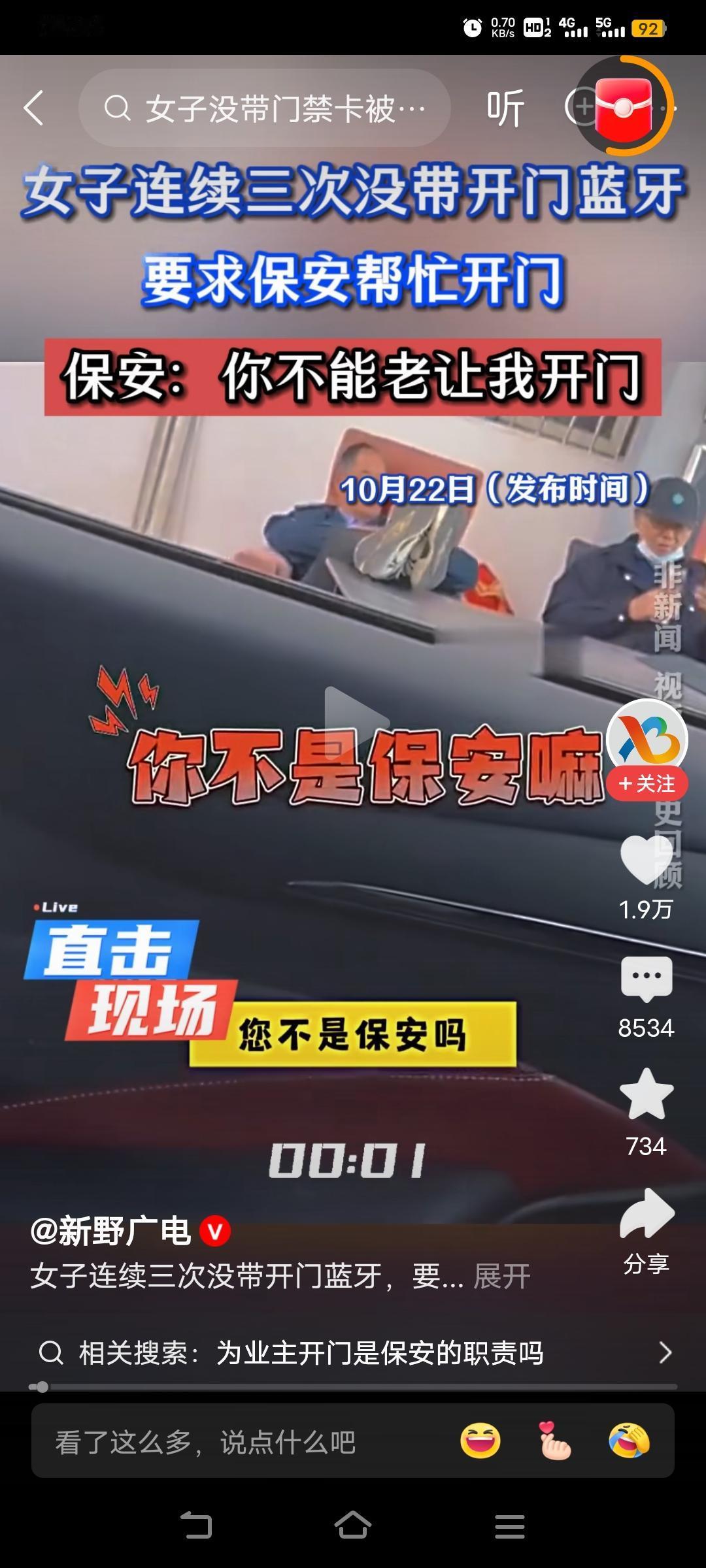 先不说谁对谁错,开门确实是他工作份内的事,哪怕女的每次出去没带也必须给开,前提是物业费按时缴
