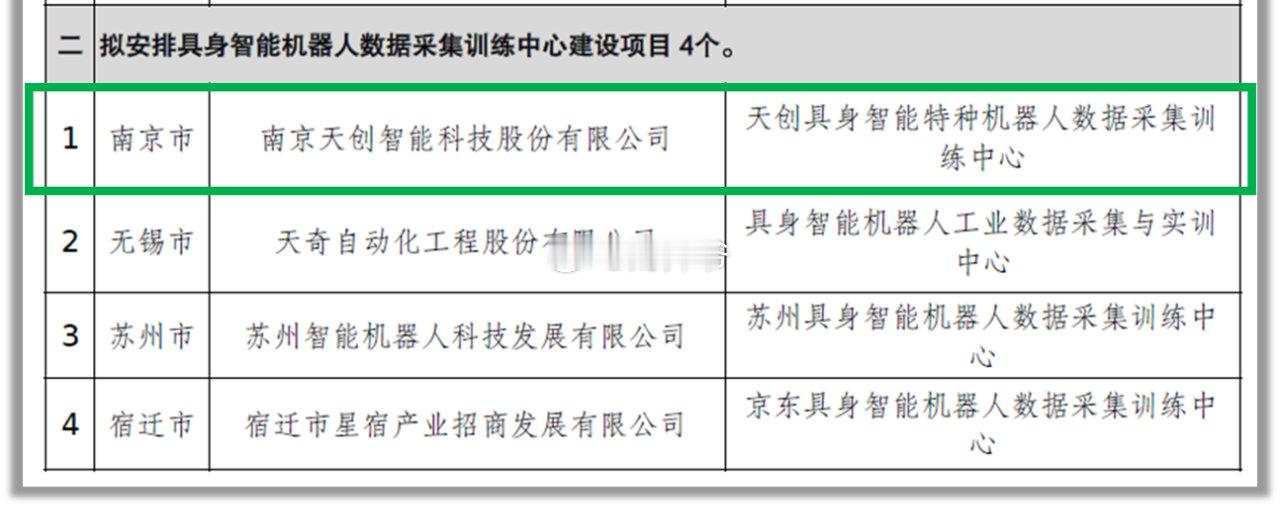 “江苏省具身智能特种机器人数据采集训练中心”4家公司入选,其中涉及一家A股上市公司。