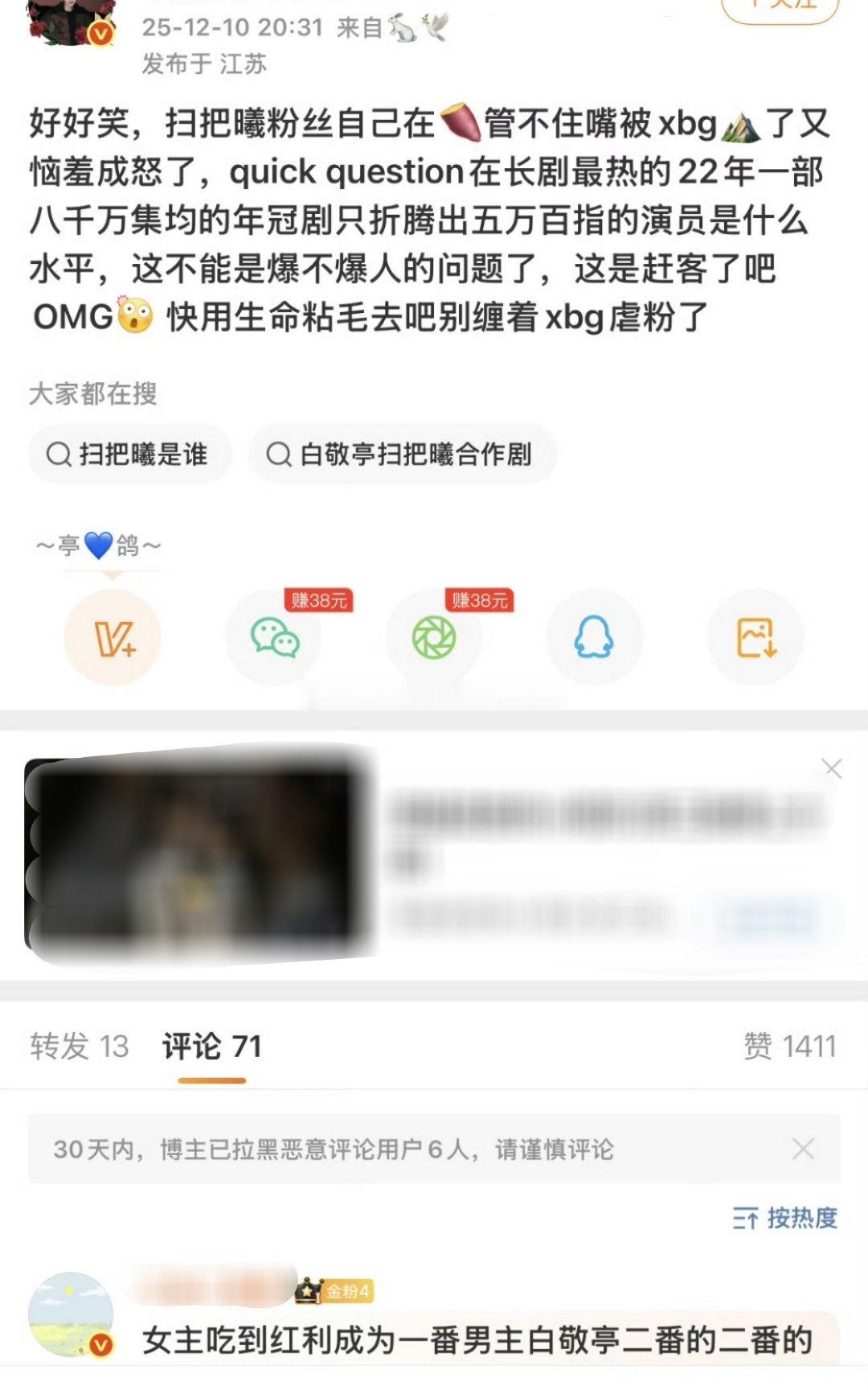 tg.白敬亭、田曦薇粉丝跨平台对线中,好像是因为有网友想让他俩二搭