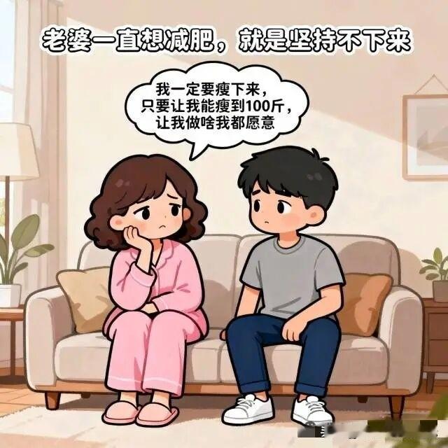 趣味漫画:老婆一直想减肥,就是坚持不下来,还跟我说:我一定要瘦下来,只要让我能瘦到100斤,让我做啥我都愿意,老公:那是不可能的搞笑漫画