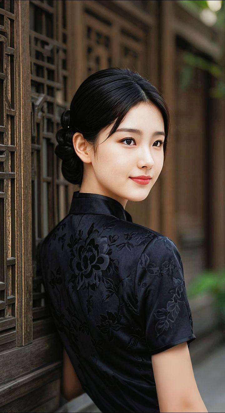 AI扩图AI黑旗袍雅韵