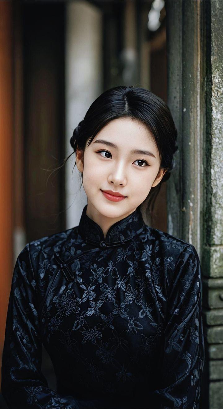 AI扩图AI黑旗袍雅韵