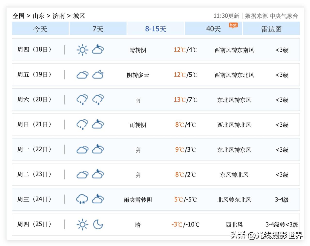 太棒了!12月12日,山东济南,中雪转小雪!12月13日,特别适合欣赏大明湖的雪景啊!12月13日,济南出太阳,最高气温0度,最低气温-6度,雪景是会很美的! 哎!很可惜,我不能在12月12日或者13日出现在济南啊!