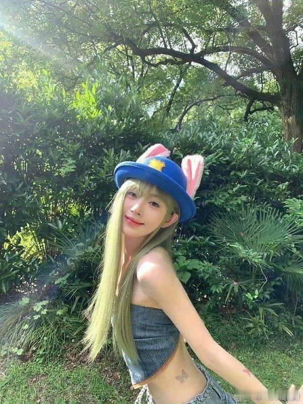 来看一下鞠婧祎的兔子警官造型 ,好美萌