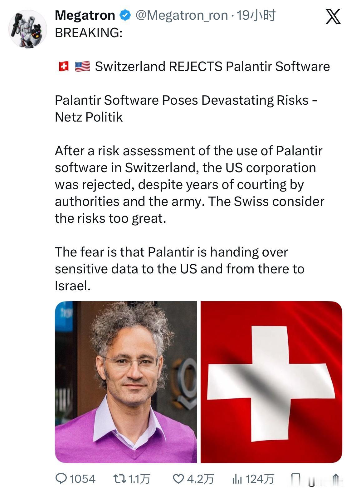 瑞士政府拒绝了来自美国的Palantir软件,原因是一份风险评估报告认为该软件会带来巨大的风险。瑞士方面担心敏感数据可能会被移交给美国,然后再转交给以色列。 Palantir(帕兰提尔)是一家美国软件公司,专门开发用于大数据分析、数据集成和情报的平台。其软件旨在帮助政府机构和商业企业从庞大的、分散的数据集中发现隐藏的模式、识别威胁,并支持数据驱动的决策。 Palantir主要有四个核心平台: Palantir Gotham:主要面向政府机构、国防和情报部门以及执法机构。该平台旨在将来自信号情报、秘密线人报告、犯罪记录等不同来源的数据整合起来,帮助分析师识别恐怖主义威胁、追踪犯罪模式并规划行动。 Palantir Foundry:专为商业企业设计,作为其数据的中央操作系统。它帮助企业客户,如银行、汽车制造商和能源公司,管理供应链、预测风险、进行质量保证并优化运营。 Palantir AIP (人工智能平台):这是一个套件,可将人工智能和大型语言模型集成到Gotham和Foundry平台中,帮助实现分析自动化并嵌入企业核心流程。 Palantir Apollo:一个持续交付平台,用于在各种环境中(包括云、本地和边缘设备,如无人机和卫星)部署、集成和管理Gotham和Foundry平台。 应用和争议 Palantir的软件应用广泛,从帮助美国情报机构定位本·拉登,到协助政府进行疫苗分发和打击税收欺诈。 然而,由于其与政府机构和国防部门的密切合作,该公司也备受争议。人们对数据隐私、监控以及该软件在移民执法和警务中的使用存在担忧。比如瑞士当局因担心敏感数据可能被移交给美国和以色列而拒绝使用Palantir软件,就反映了这些地缘政治和隐私方面的担忧。