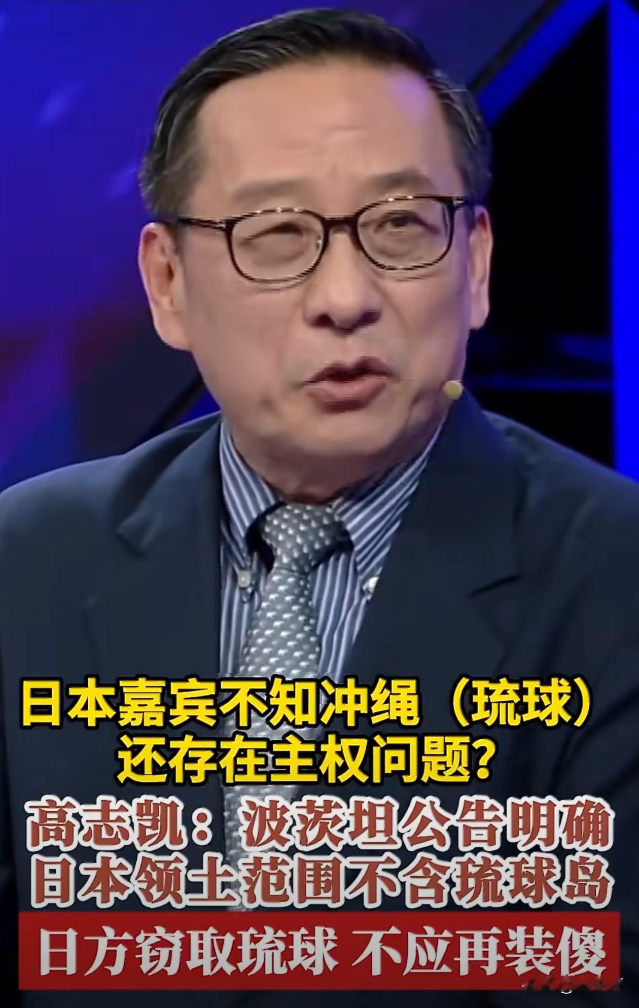 高志凯教授只用了一句话 把日本嘉宾怼的哑口无言! 日本嘉宾一脸“惊讶”地说不知道琉球有主权问题。 高志凯直接反驳:波茨坦公告明确日本领土范围不含琉球,日方窃取琉球,不应再装傻。琉球不是日本的领土,这是非常明确的。 二战结束后,中美英苏等国签了《开罗宣言》和《波茨坦公告》,白纸黑字定规矩:日本只能保住本州、北海道、九州、四国这四个岛,之前抢来的地盘全得还回去 。后来盟军还专门发了训令,明确北纬30度以南的琉球群岛,根本不算日本领土。可1972年美国私下把琉球的管理权交给日本,这哪是合法移交?纯属两个国家私相授受! 所以说日本嘉宾根本不是“不知道”,而是故意装糊涂。他们想把侵略历史抹掉,把别人的地盘说成自己的。可历史哪能随便改?《波茨坦公告》这些国际文件是铁证,冲绳民众的不满也是铁证,现在越来越多的冲绳年轻人都喊着要独立,不想再被日本管着 。 历史就是历史,白纸黑字,铁证如山。琉球地位未定,这是一个联合国都悬而未决的国际议题。 装傻充愣糊弄不过去,尊重事实、遵守国际法,才是正途。我们也应该多关注琉球当地民众的声音,他们的意愿,同样值得被倾听。