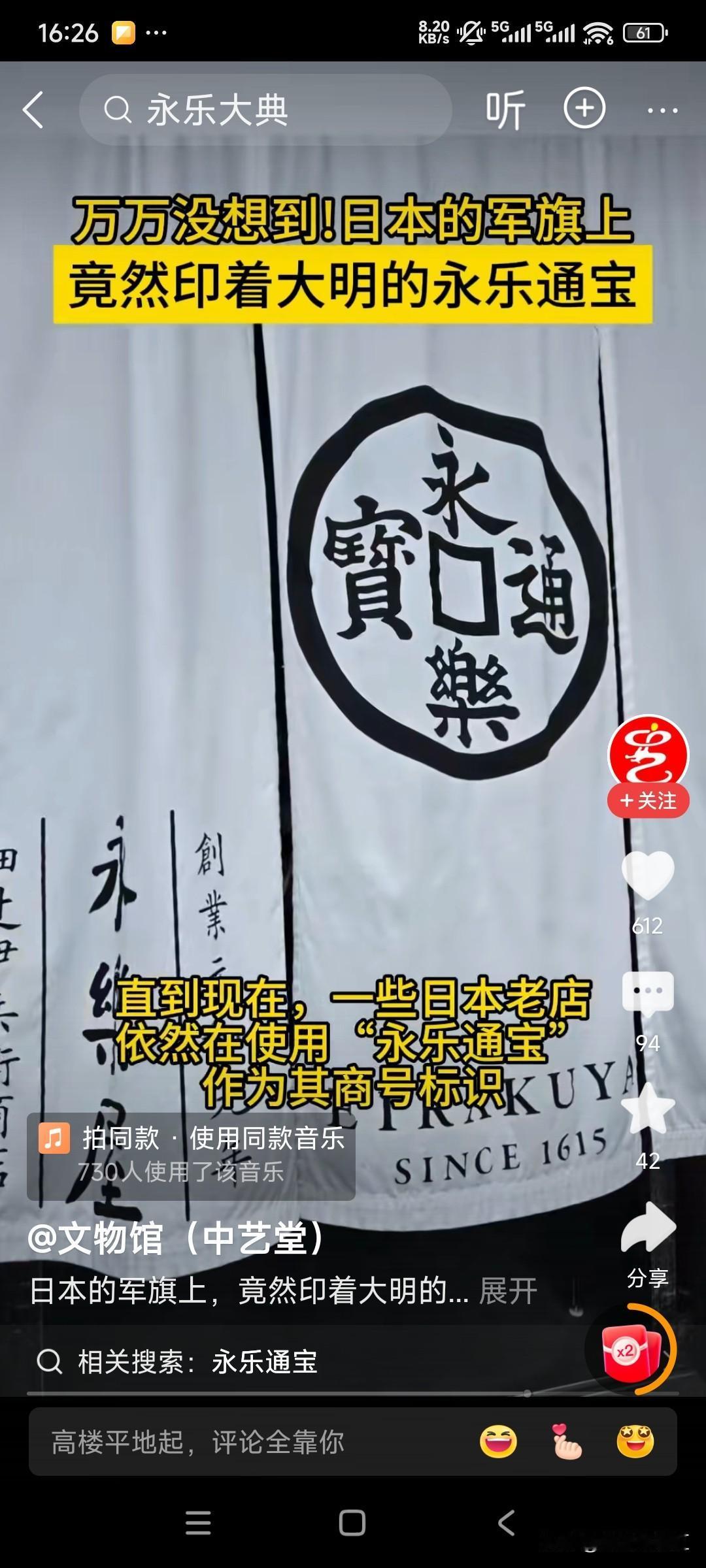 今天看到一个自媒体说日本的军旗上印着永乐通宝! 配合着最近这几天网络上突然涌现出大量的讨论红楼梦到底是一本什么样的书的内容,很多传达出来的信息都在说红楼梦是一本反清复明的书。而且还煞有介事的联系到孙中山先生驱除鞑虏,恢复中华的革命口号。说红楼梦的作者是明末遗民! 这个就比较有意思了。 我们一定要保持冷静,不要随波逐流,辨别是非。辨清真伪,不要被舆论所裹挟。 其实无论是明朝还是清朝,任何一个朝代都是喝着民众的血而建立的。 我们没有必要为任何一个朝代而歌功颂德或者是踩踏。 历史的更替是发展的必然。没有一劳永逸,永不磨灭的王朝。 我们要珍惜现在的当下。