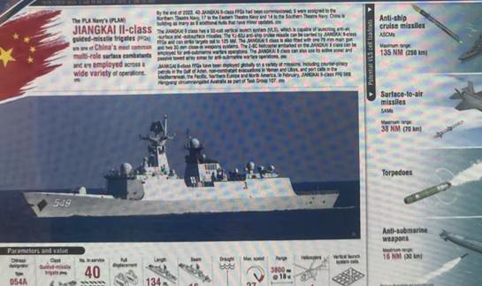澳大利亚国防部称海南舰编队目的地尚不明确——澳大利亚媒体ABC报道,澳大利亚太平洋事务部长帕特·康罗伊在12月9号表示,澳大利亚国防部正在密切关注由075海南舰、055延安舰、054A某舰(澳大利亚国防情报机构提供的出现了常州舰,但大概是资料图)和903A骆马湖舰组成的中国海军编队的动向,但是不会透露其具体下落。 澳大利亚政府国防情报机构制作了简报PPT,介绍了海南舰编队的能力(图1,图2)。 康罗伊表示,澳大利亚向太平洋国家预先简报了今年2月~3月中国海军055遵义舰编队绕澳航行的情况。 澳大利亚前海军军官、澳大利亚国立大学安全学院的专家助理詹妮弗·帕克猜测,海南舰编队不太可能进入珊瑚海,因为澳大利亚官方没有发布相关消息,很可能正向太平洋深处前进,并根据航速和时间推测可能位于瑙鲁、马绍尔群岛或所罗门群岛以东,巴布亚新几内亚以北海域。