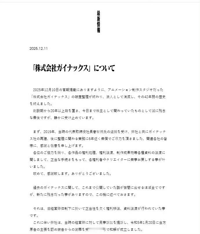 《新世纪福音战士》制作公司「GAINAX」今日发布声明,公司目前已完成破产整理正式解散。42年的动画制作历史结束了。