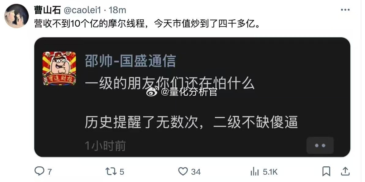 我早上在星球里就说了,摩尔线程被爆炒不是真的“无脑”,其实背后的资金很阴险,几乎