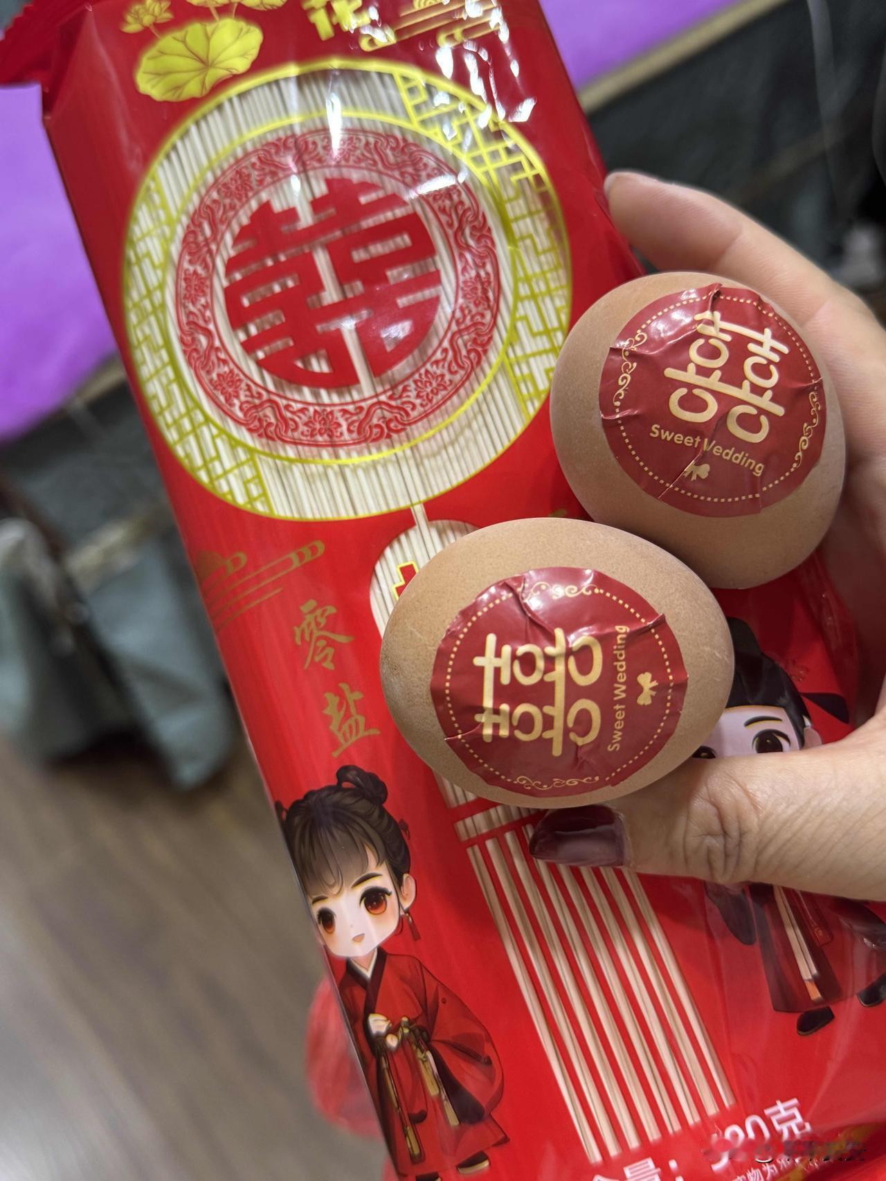 满月礼里的温情与传承 参加朋友家孙子的满月宴,临走时收到的回礼让人心头一暖。红彤彤的喜面包装袋上印着喜庆的“囍”字,两颗贴了喜字贴纸的红蛋卧在旁边,中式满月礼的仪式感拉满。 红蛋是满月礼的经典符号,浑圆的蛋体象征着生命的圆满,红色则裹着驱邪纳福的美好期许,传递着添丁之喜的雀跃。那捆细长的喜面更有讲究,面条的绵长寓意着孩子能长命百岁、福寿延绵,也藏着家族血脉生生不息的祈愿。 这些看似普通的物件,实则是刻在中式民俗里的温情。它们把长辈对新生儿的疼爱、对生命的敬畏,都揉进了这一枚蛋、一把面中。在快节奏的当下,这样的传统礼俗依旧鲜活,让我们在分享喜悦的同时,也触摸到了传统文化里最动人的温度。 各位读者你们那里也有这样的习俗吗?欢迎评论区聊聊!