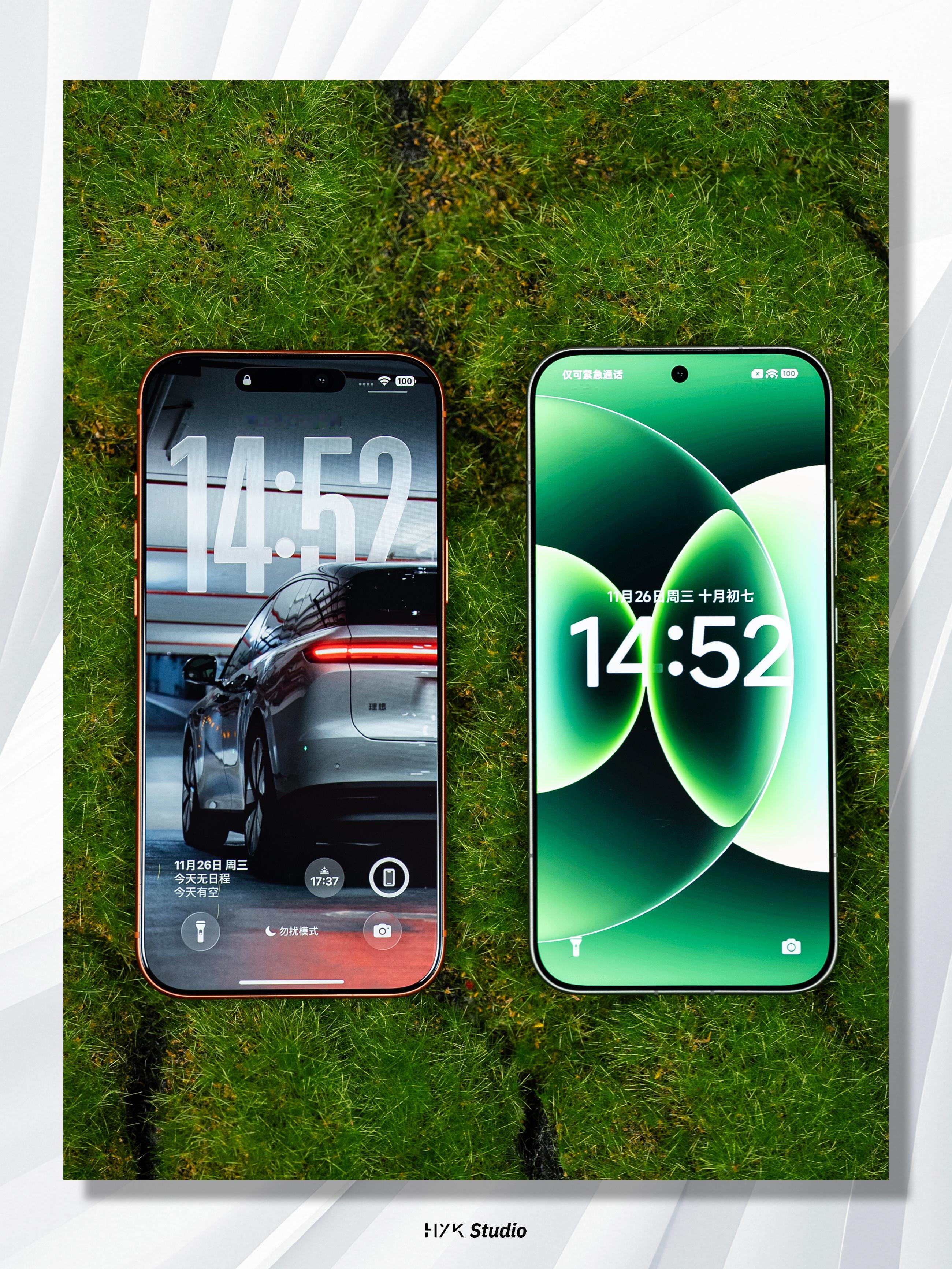 HYK图赏|小米 17 Pro Max&iPhone 17 Pro MaxiPhone这代背部采用了拼接式的设计,而小米这代将超广角移动到背板上,两者这代的辨识度都很高。两款都采用了横向设计的镜头Deco,虽然都是横向模组,但是小米多出了一个背屏,这也是其这代的亮点之一。一个突出玩法,一个突出个性,这两款机器哪个点更吸引你呢?有点东西